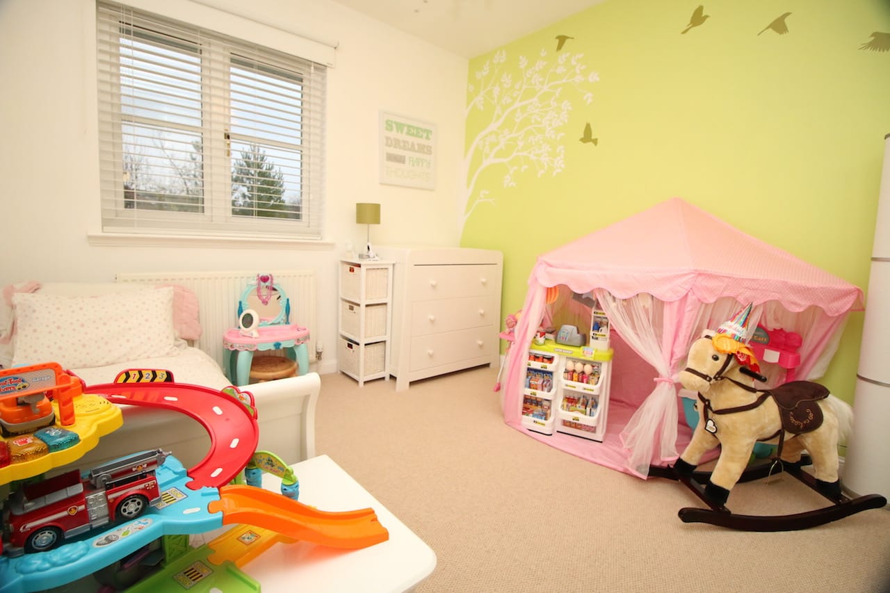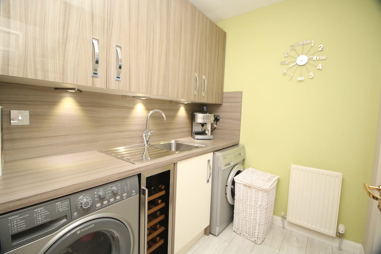 The real wow in this property is the newly fitted designer kitchen, it has been upgraded with luxury extras; 5 ring gas hob, oven and integrated microwave and designer hood. The kitchen has space for informal dining, making this room the heart of the home. The utility room is ideal for keeping laundry out of sight and comes complete with integrated wine cooler. The immediately impressive lounge has been decorated in neutral tones, adding to the modern, sleek feel of this property. French doors lead from here to the extensive rear garden which compliments the property. There is a large lawned area which is adorned with an area of decking, ideal for summer BBQs and outdoor entertaining. The front facing dining room enjoys a feature bay window and offers the perfect space for formal dining. A professionally converted garage boasts a full wall of slate which adds the this already fabulous property, a bonus room for TV room/home office/play room.