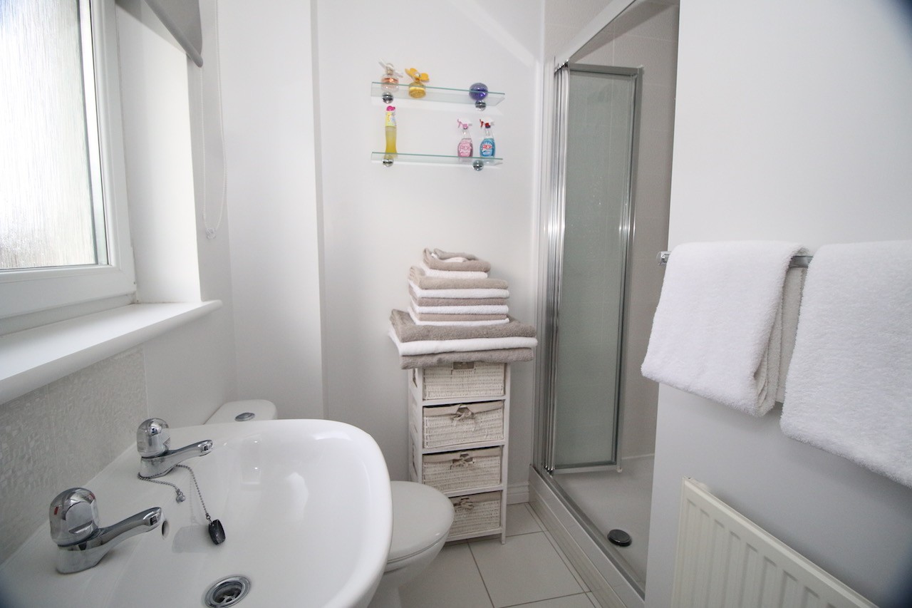 On the upper level are three good sized bedrooms and the master bedroom also benefits from its own ensuite facilities and fitted wardrobe. The spacious family bathroom include a modern white suite with chrome towel warmer.