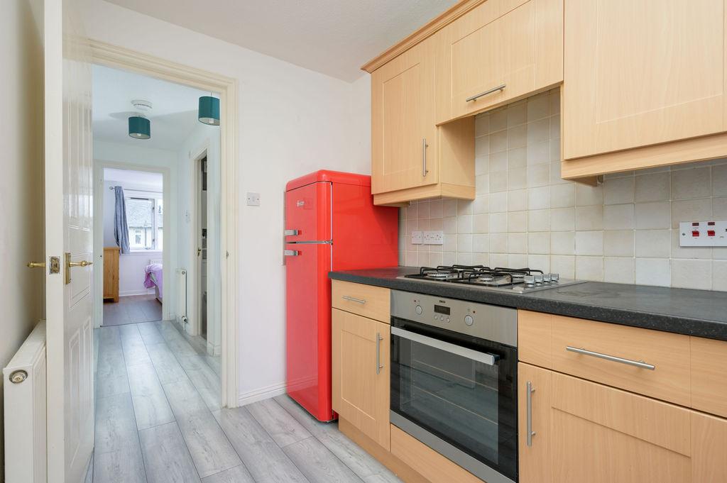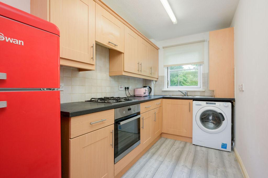 The flat offers a comfortable lounge area with a Juliette balcony, enhancing the living space with natural light and fresh air. The kitchen boasts a good range of base and wall units, providing ample storage and functionality.