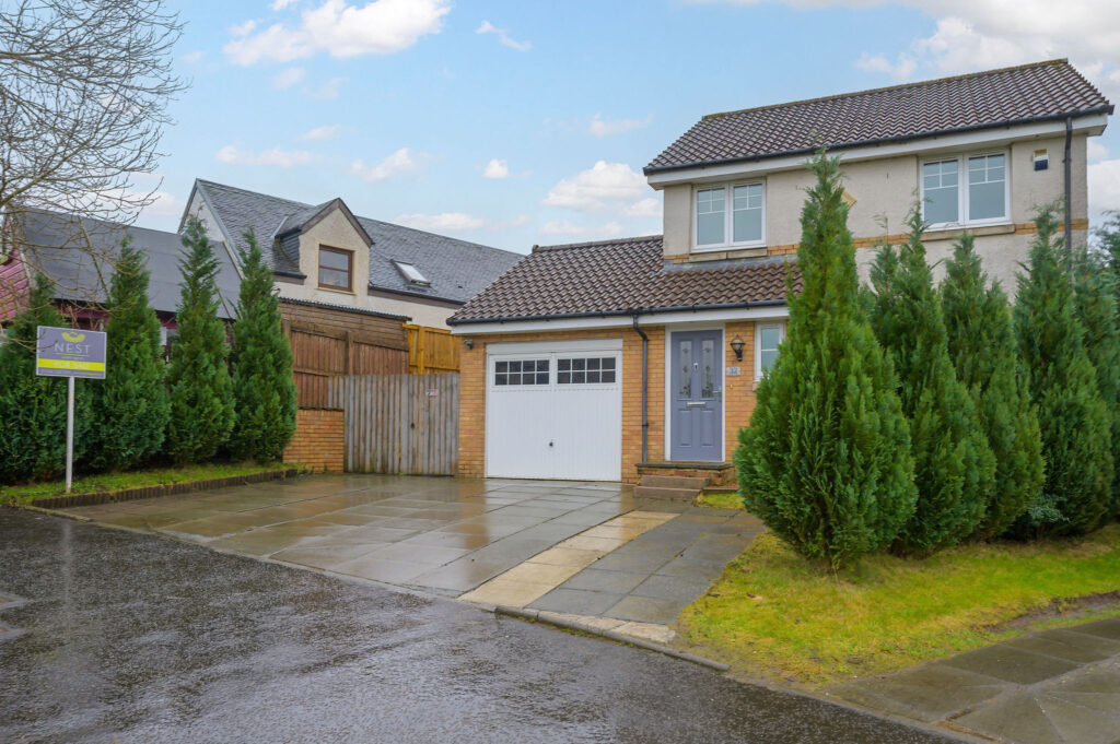 This attractive three-bedroom detached family home occupies a desirable corner plot within a popular residential area of Bonnybridge and benefits from a south-facing, fully enclosed rear garden.