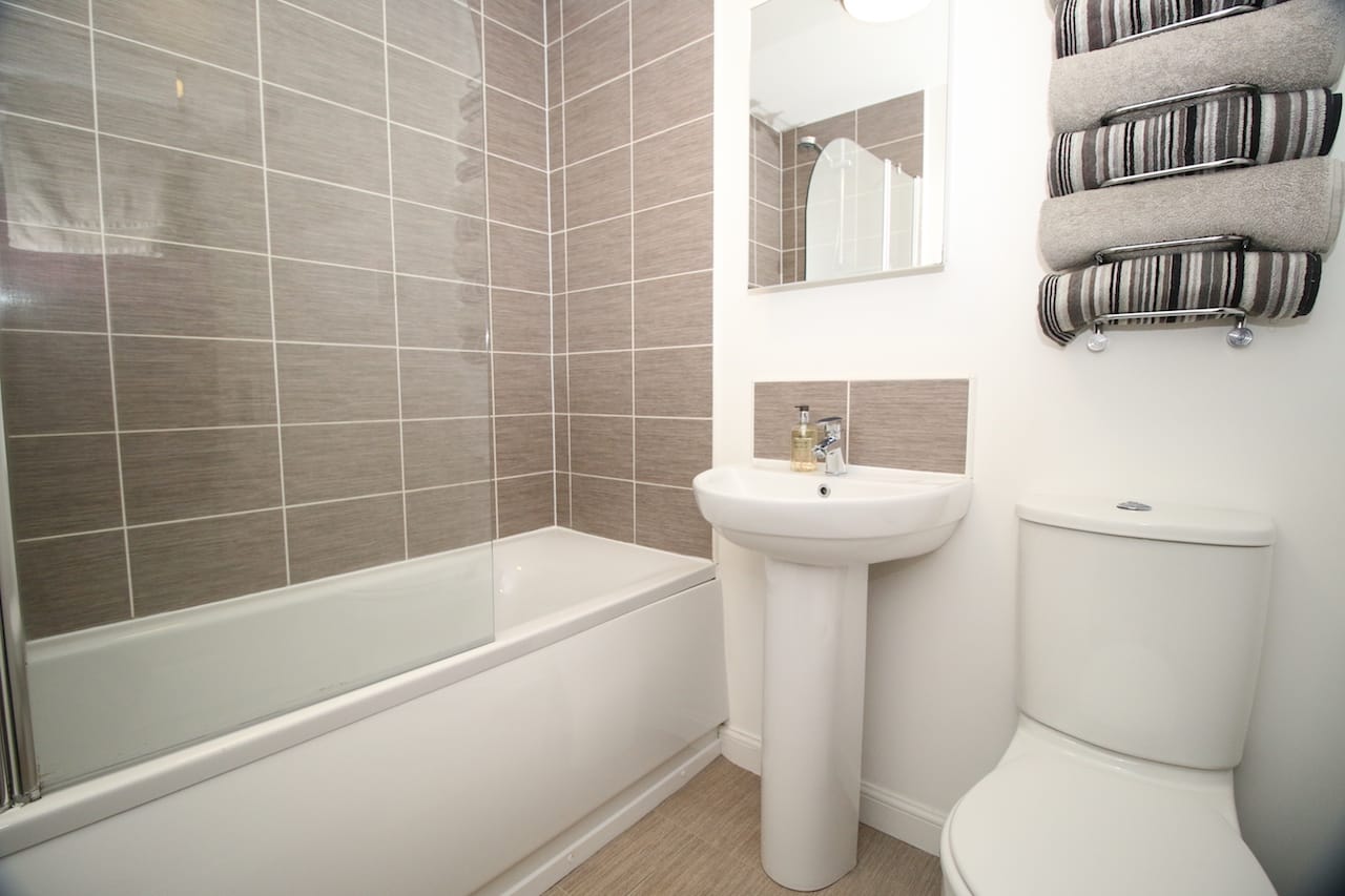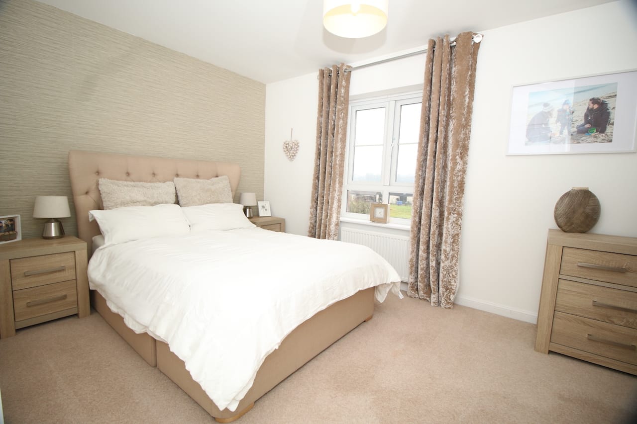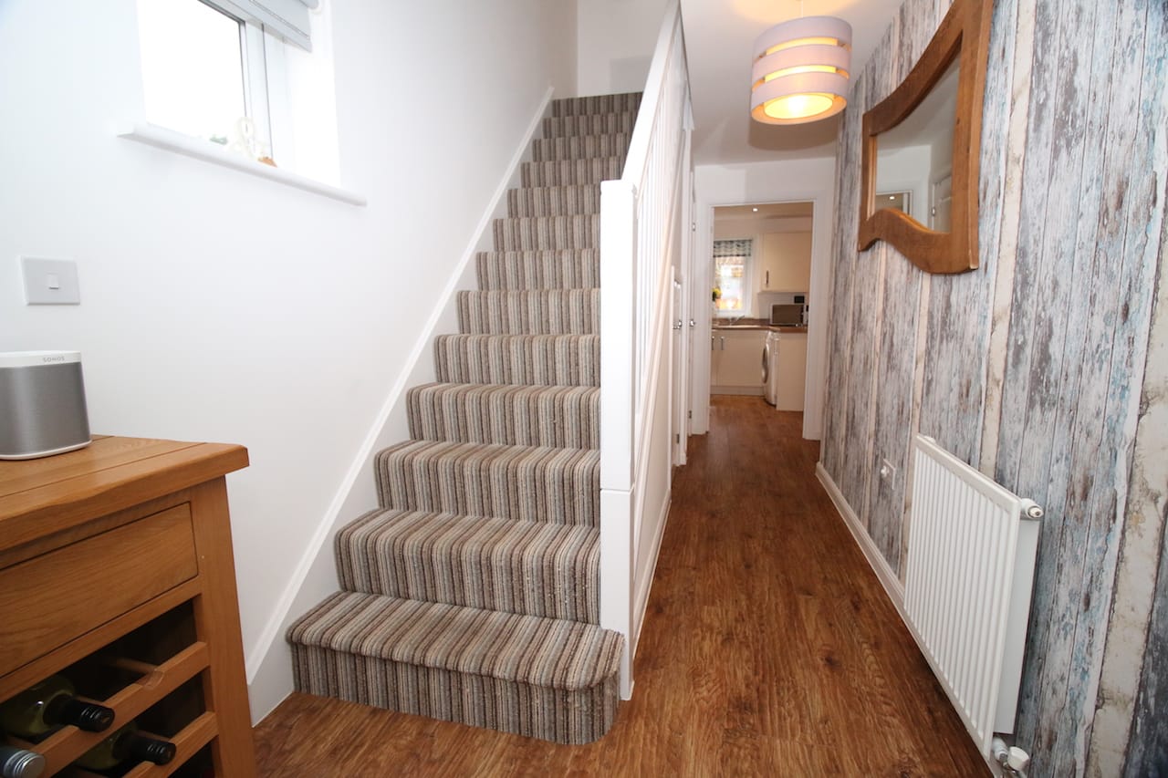 On the upper level are the 3 well appointed bedrooms and family bathroom.  The master bedroom benefiting from fitted sliding wardrobes and store cupboard.  The family bathroom is modern and has been upgraded with shower over bath.