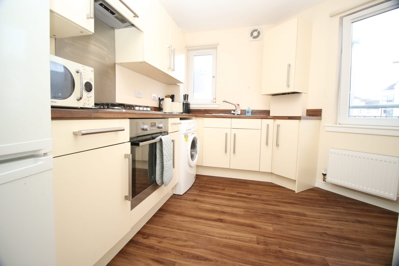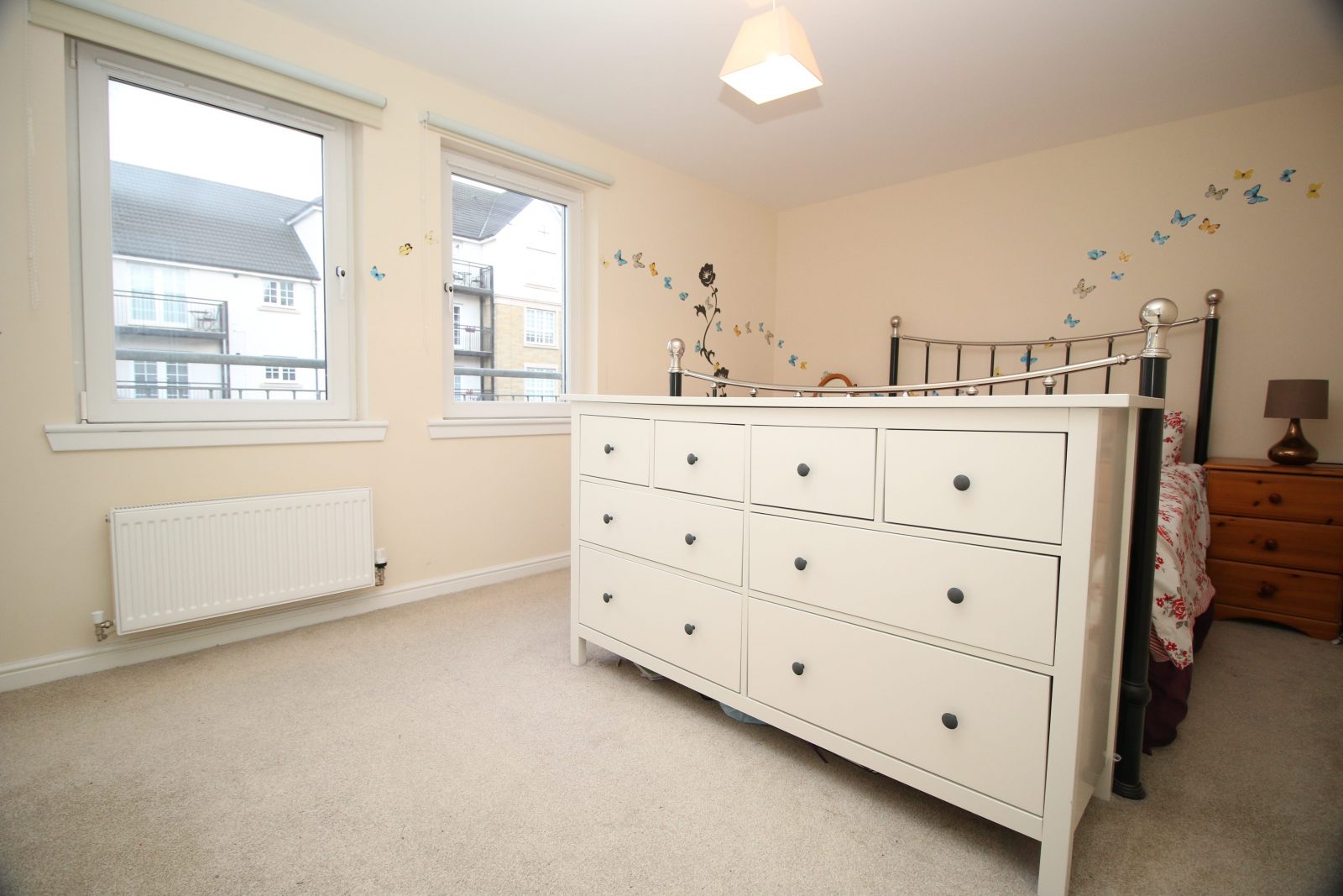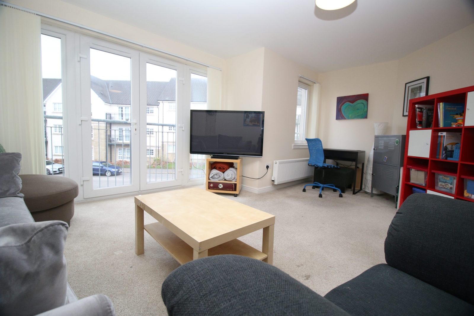 LUXURY, 1 bedroom first floor apartment within the highly desirable Kinnaird Village in Larbert. Gorgeous lounge with French doors to Juliet balcony.