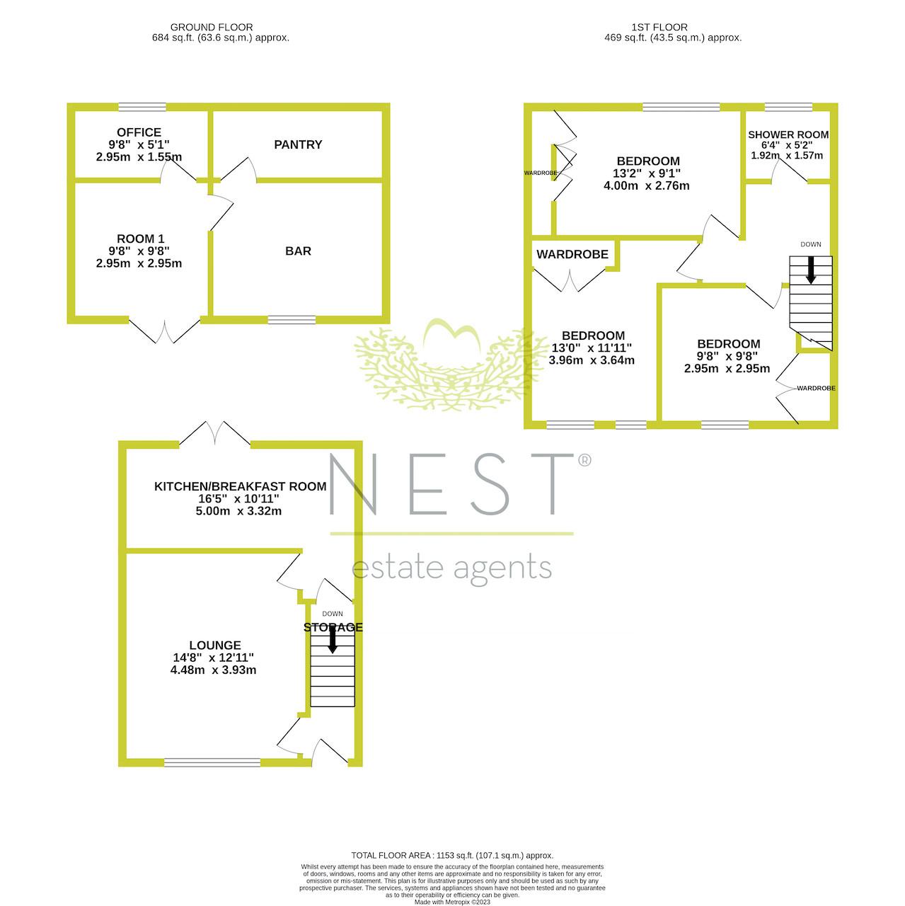 On the upper level are 3 well proportioned, double bedrooms and shower room. Excellent storage throughout.