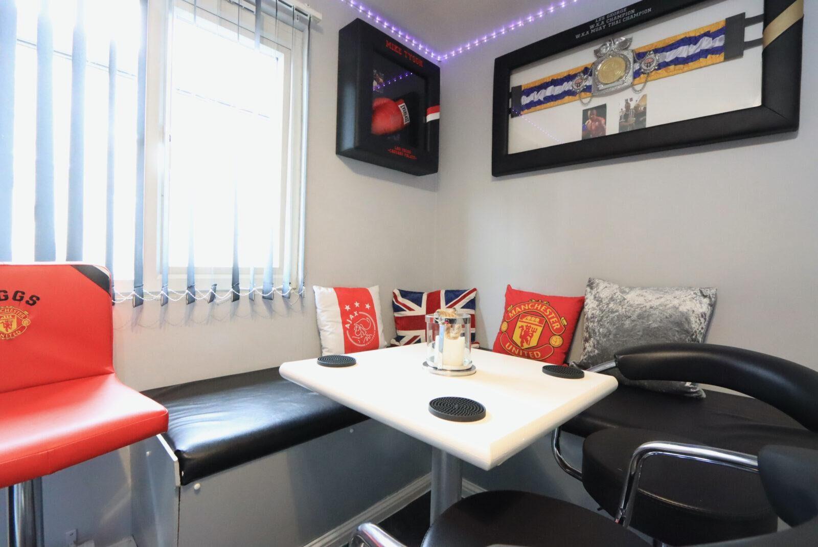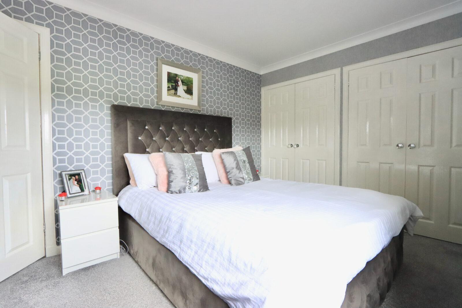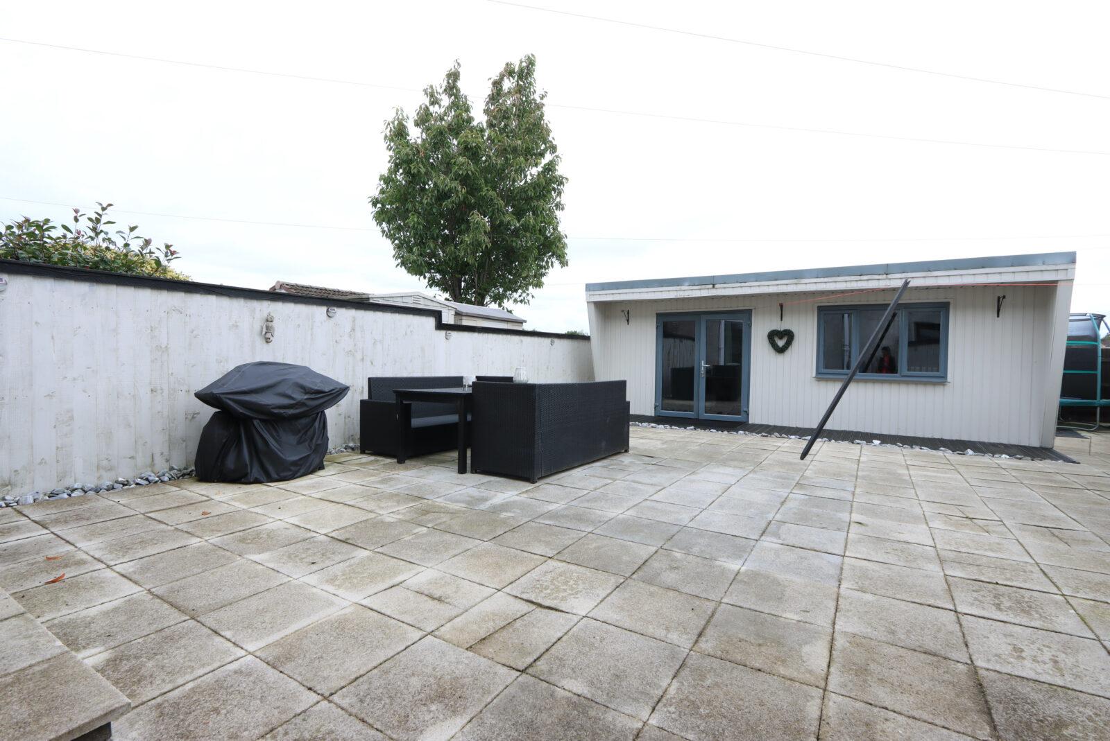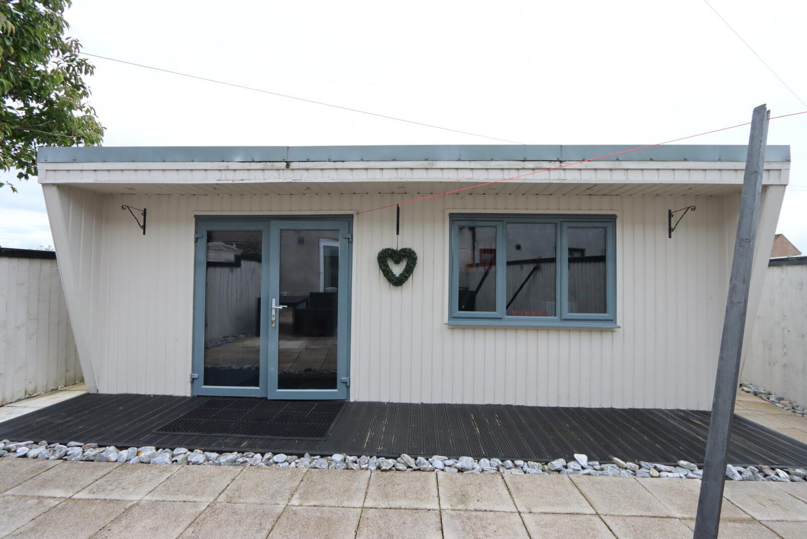The front facing lounge creates a relaxing atmosphere for entertaining or family living and flows to the kitchen dining area. The modern fitted kitchen enjoys ample base and wall units, complete with integrated oven hob and hood. There is space for dining, ideal for family mealtimes. The low maintenance rear garden offers a large patio area, the perfect spot for outdoor entertaining or to enjoy a summer BBQ. The fabulous outbuilding which hosts large utility space/home office, a playroom, a fully fitted bar and large pantry, a fabulous addition to this beautiful property.