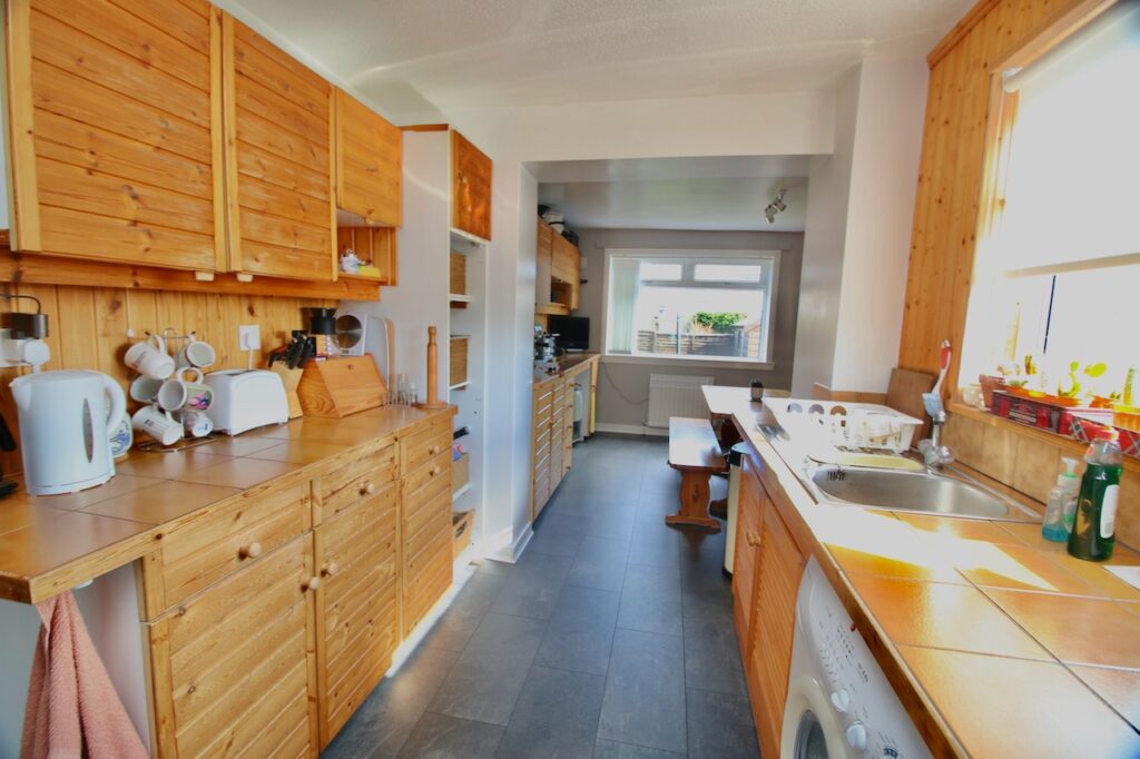 A welcome reception hallway gives access to all accommodations on the lower and upper floor. The bright front facing lounge is sure to impress by the generous proportion of the room with large double glazed windows which flood the room with natural light. The focal point of the room is the fireplace, perfect for cosy nights. The open plan kitchen/dining enjoys an excellent range of base and wall units complete with fridge/freezer, washing machine and oven which are included in the sale. The dining area is the perfect place for family mealtimes or entertaining with convenient back door access leading out into the rear garden. The extension is currently being used as a home office and snug and could be used as a fantastic family area.