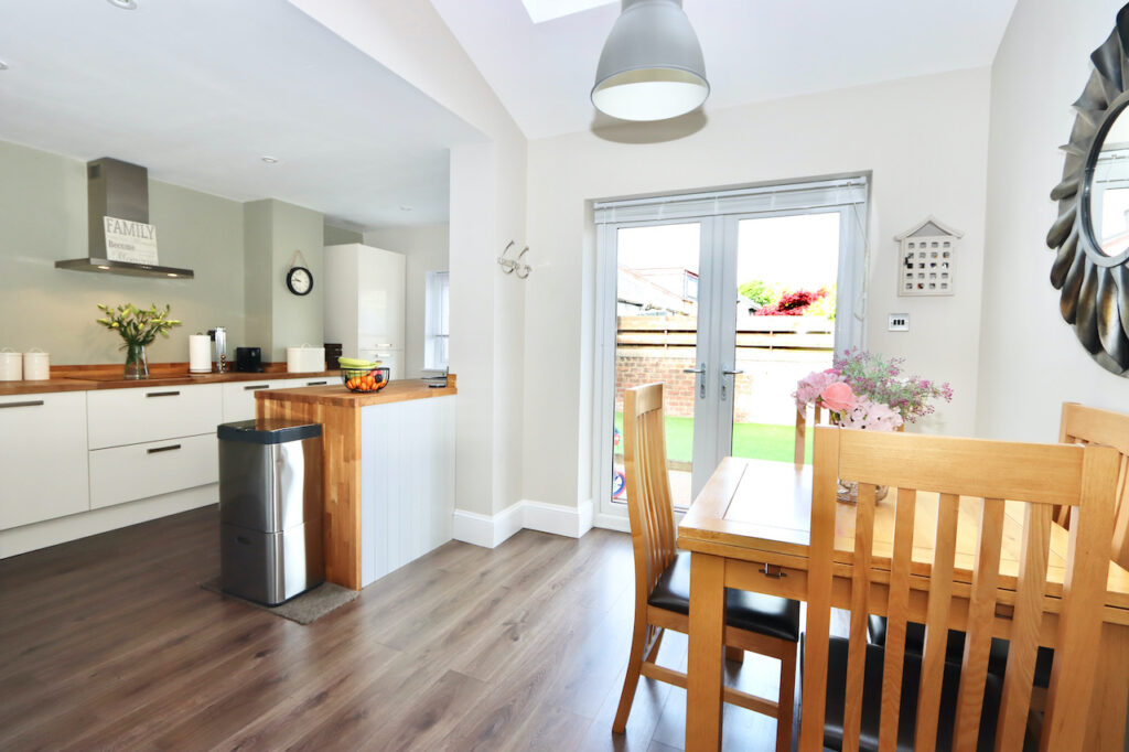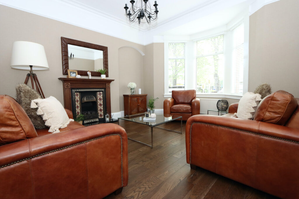 The subjects instantly endear with its handsome façade and grand bay window. Welcoming you inside is a practical entrance vestibule leading into the impressive reception hall, whose soaring ceiling is framed by original dentil cornicing and moulded corbels. On the right is the first of two reception rooms: the splendid formal lounge. In addition to a wide bay window, the room also boasts a gas fire framed by a traditional surround. The second reception room – the family room – provides an ideal setting for family living and entertaining, and opens into the stunning kitchen and dining area to the rear. In addition to ample fitted storage and workspace, the kitchen is replete with a full complement of integrated appliances: a four-burner induction hob, a double electric oven/grill, a wine cooler and fridge freezer. A modern WC with store cupboard has been positioned for added convenience.