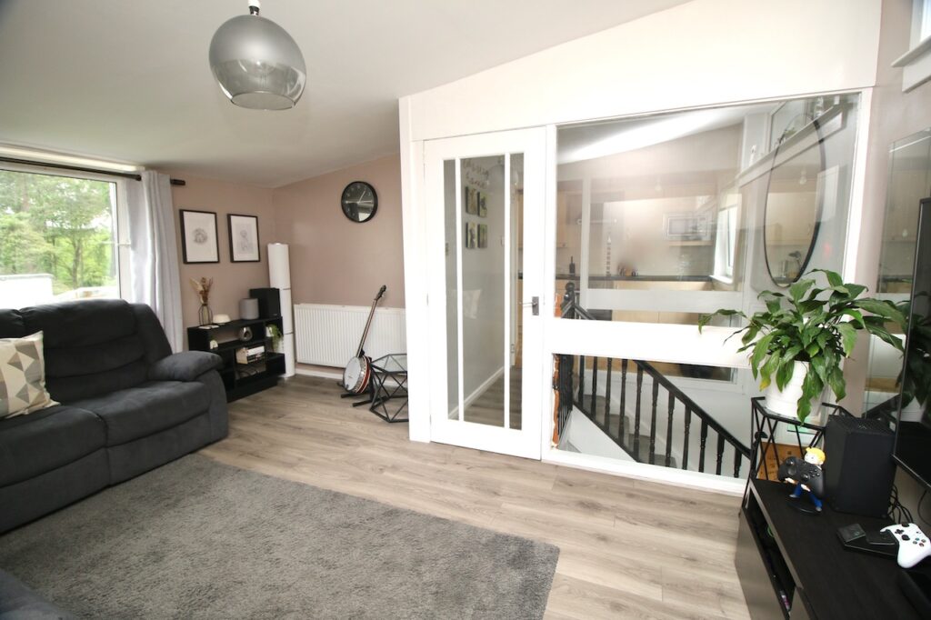 The bright entrance hall provides access to all accommodations on the upper and lower floor including a large store room which could be used as a home office. On the upper floor you will be immediately impressed with the spacious lounge which enjoys two separate double glazed windows which flood the room with natural light and enjoys an open outlook. The kitchen is well equipped with a good range of base and wall units making excellent use of available space along with a convenient utility cupboard. The kitchen area also has the additional space for informal dining or a morning coffee.