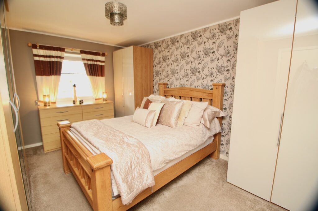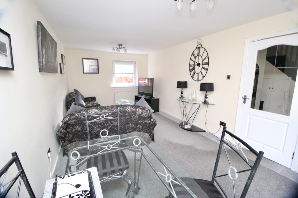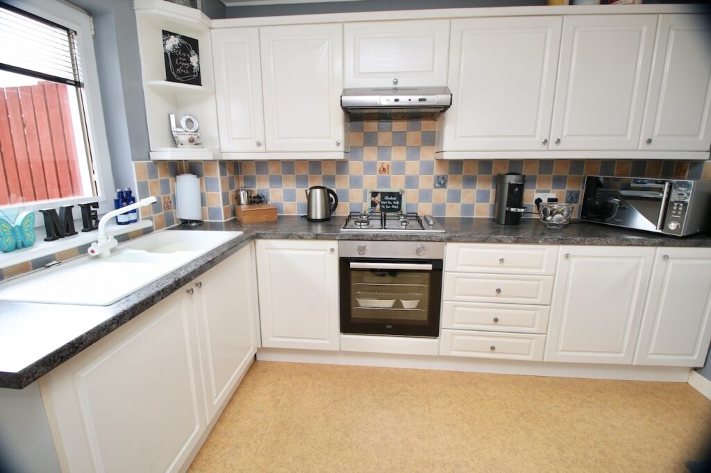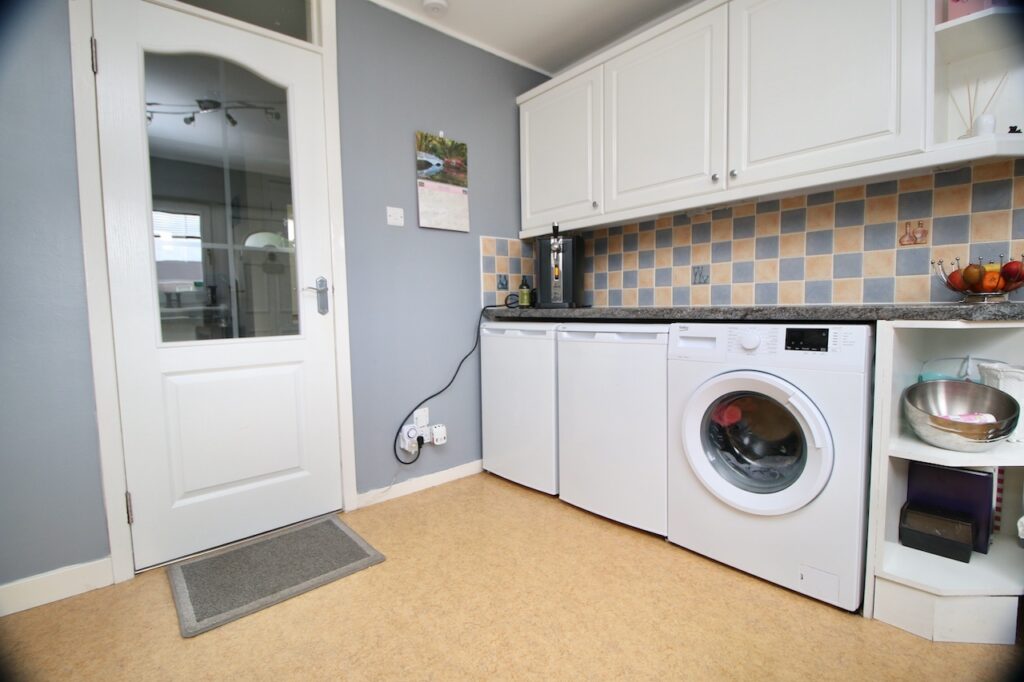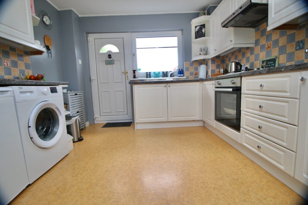 The hallway provides access to all accommodations on the lower and upper floor. The lounge area is sure to impress by the generous size of the room with double glazed windows which flood the room with natural light. The lounge also has the additional space for informal dining, perfect for family mealtimes or entertaining. The modern kitchen is well equipped with a good range of base and wall units making excellent use of the available space complete with brand new oven, gas hob, fridge and freezer, washing machine which are included in the sale. The kitchen has convenient rear door access onto the garden and parking.