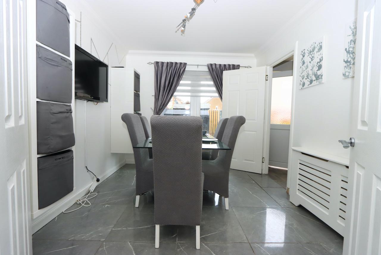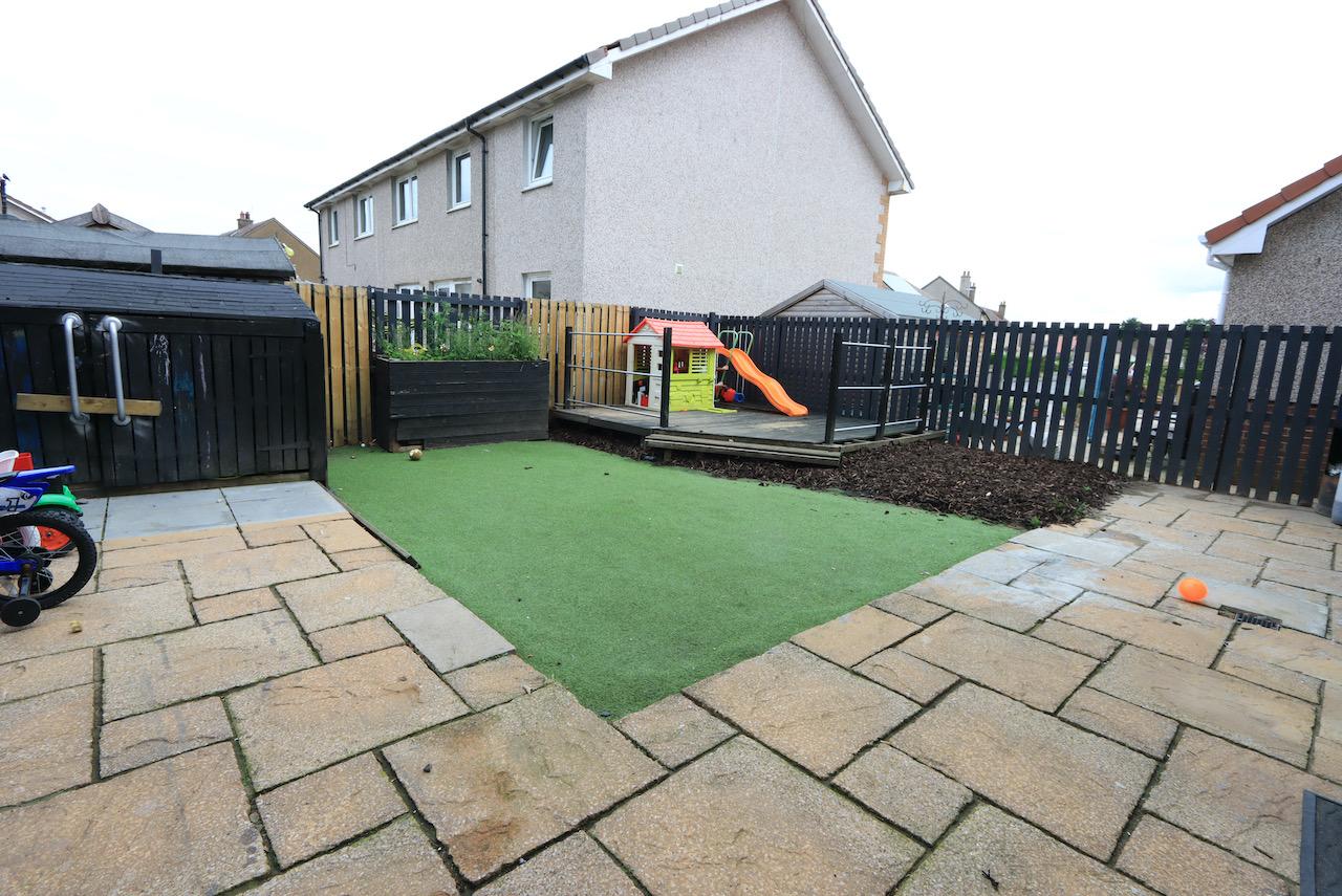 Complimenting the property is the rear garden, which has been laid to lawn with artificial turf, bordered by slabs, as well as a decking area ideal for summer BBQs and outdoor entertaining.