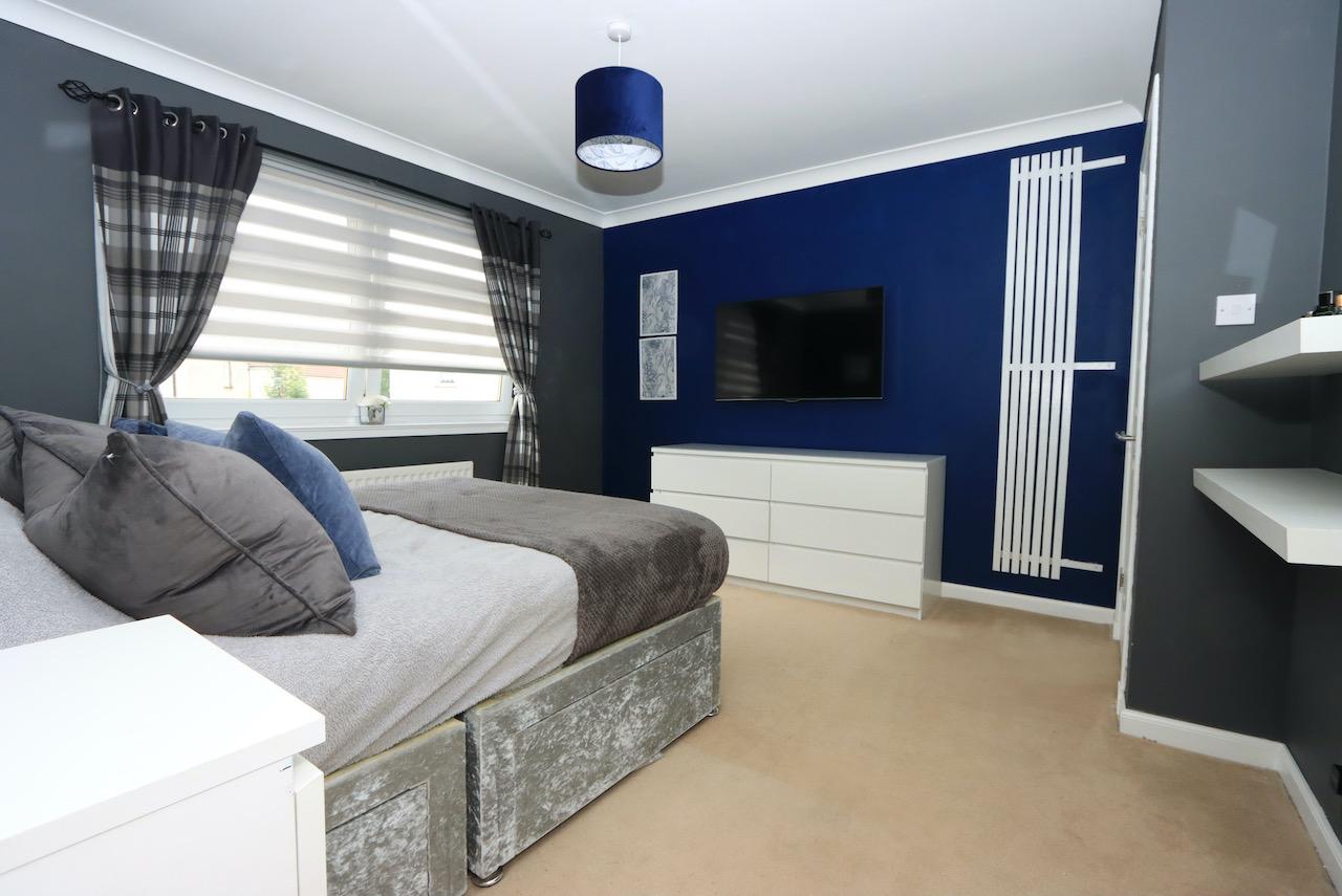 You will be immediately impressed with the entrance hallway, with high gloss ceramic tiling adding a touch of luxury. The front facing lounge offers a well proportioned space, perfect for entertaining or family living and enjoys a focal fireplace and recessed shelving with downlights. Flowing from here via double doors, is the separate dining room which enjoys French doors and is ideal for family mealtimes, or could be utilised as a family room/play room/home office. The fitted kitchen offers a good range of base and wall units, with oven hob and hood and integrated dishwasher. A convenient WC completes the ground floor accommodation.