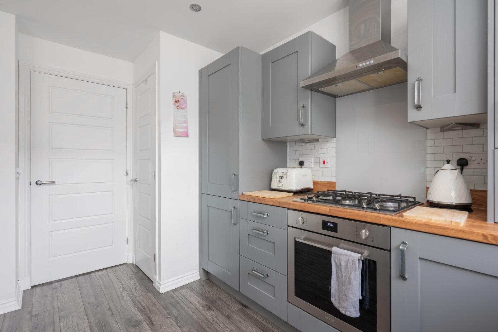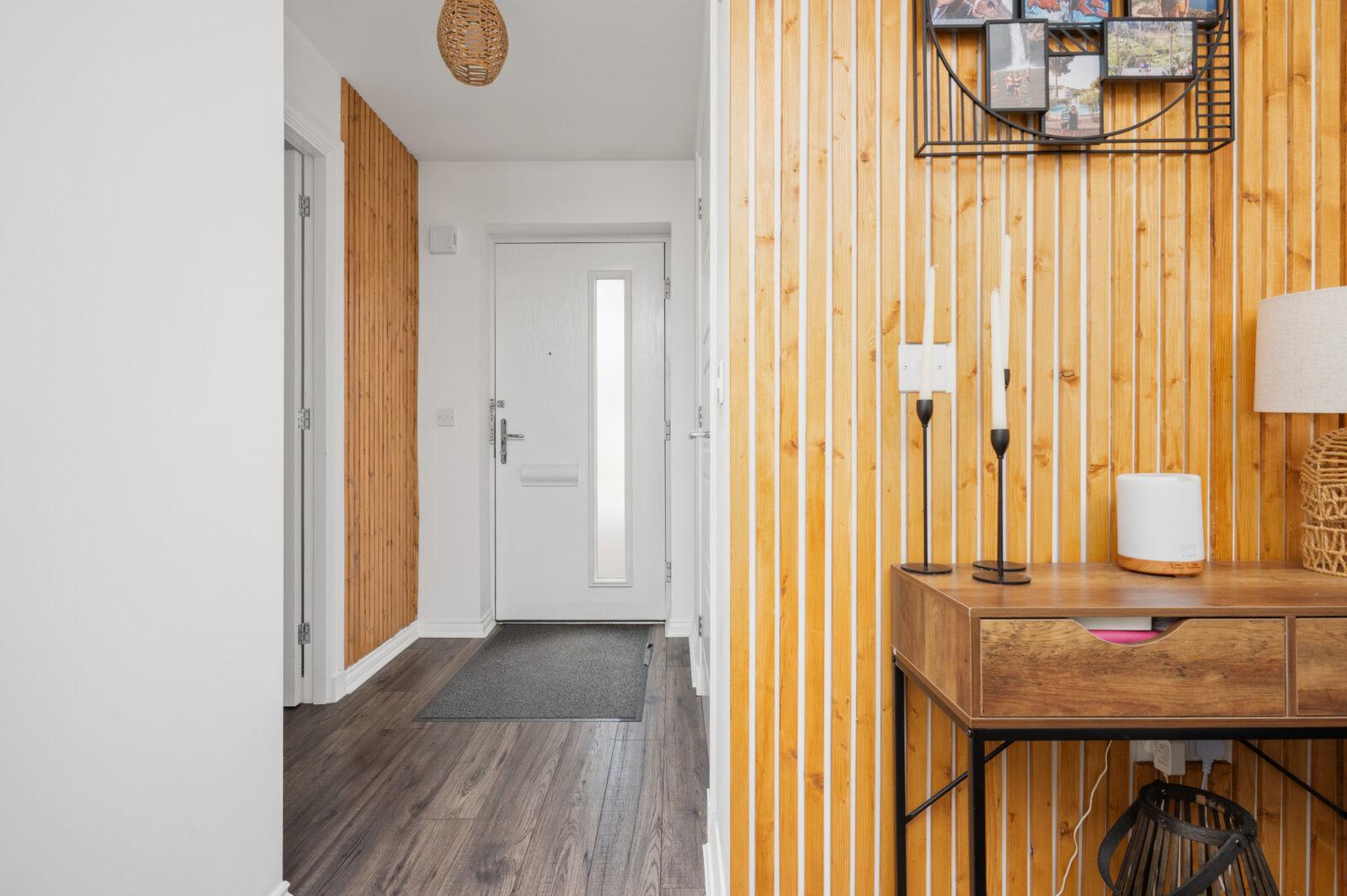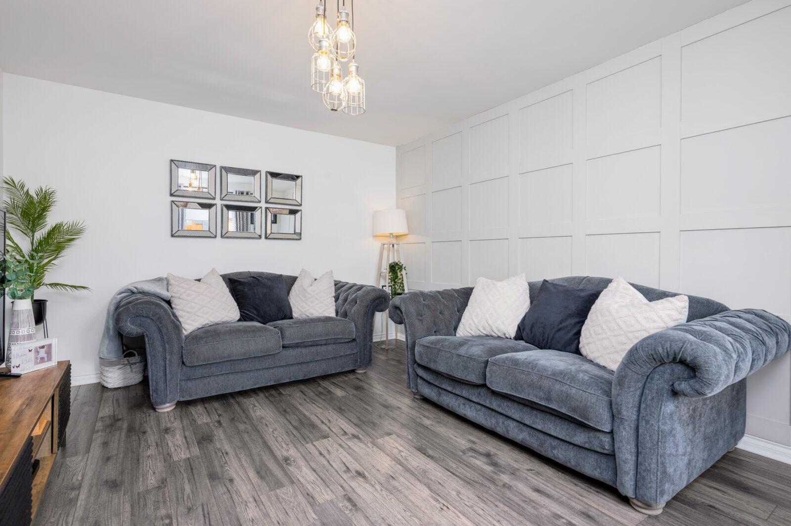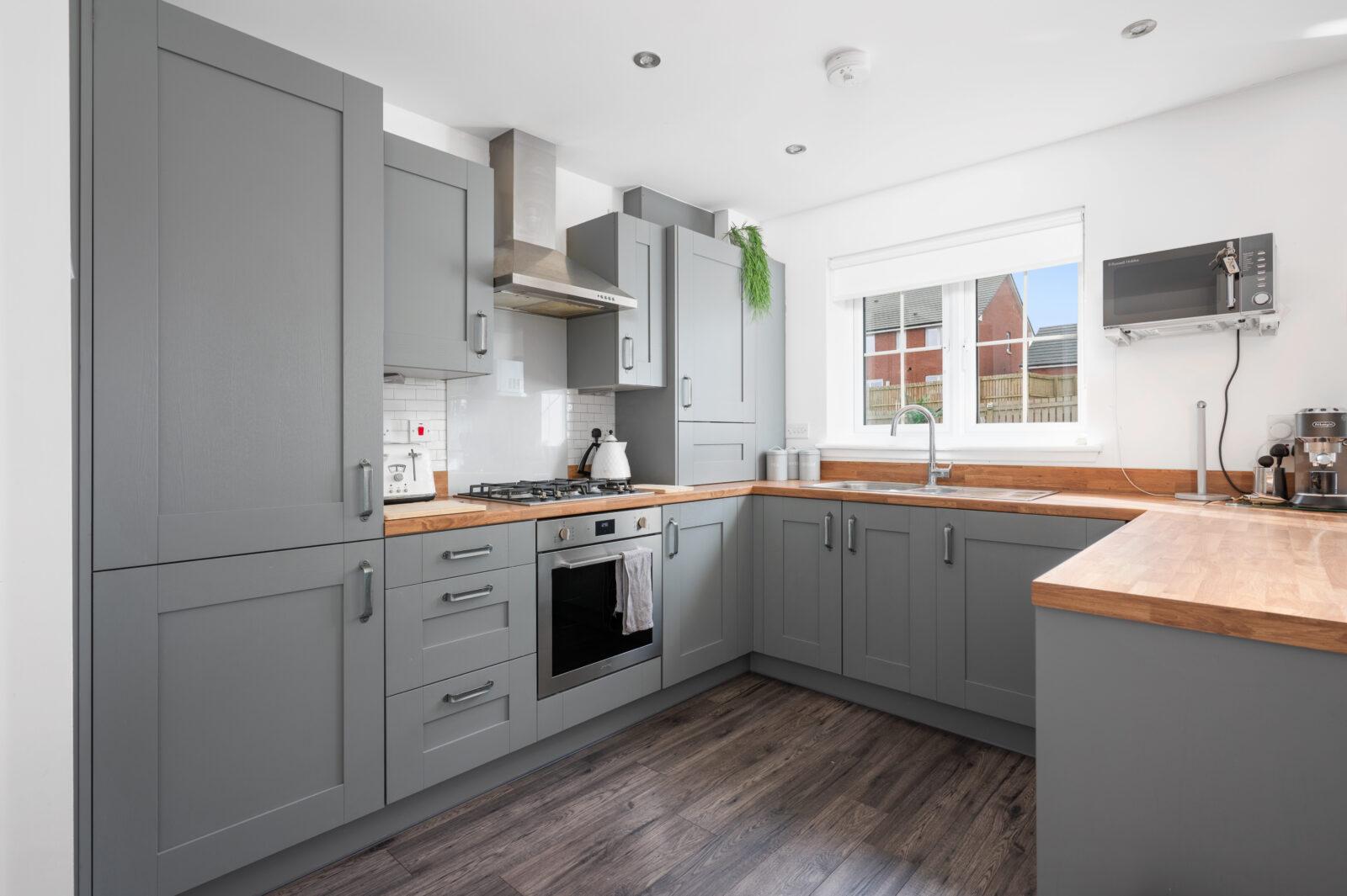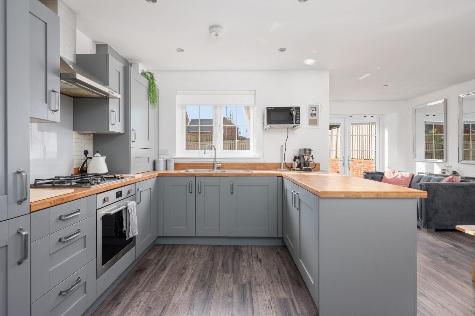 As you enter the property you are welcomed by the reception hallway which leads to all accommodations on the lower and upper floor. The bright front facing lounge is sure to impress by the generous proportion of the room with large double glazed windows which flood the room with natural light with feature wood paneling. The generous size kitchen/ dining area is the real wow of this property making this area the heart of the home. The contemporary kitchen is complete with generous wall and base units and is complete with gas hob, oven, integrated appliances include fridge freezer, washing machine which are included in the sale. The kitchen is finished with graphite grey shaker doors, wood block worktop, glass splash back and chrome accessories.