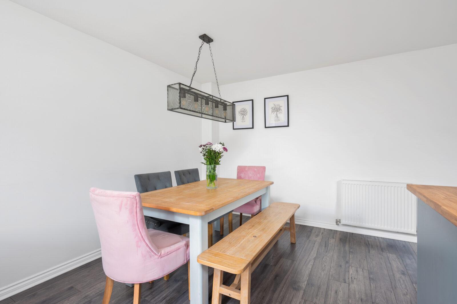 The dining/family area is the perfect space for family mealtimes, entertaining and open plan living with French doors which open onto the generous rear garden. To complete the lower floor is the convenient downstair WC complete with WC, wash basin finished with large half height wall tiles, mosaic feature flooring and chrome accessories.