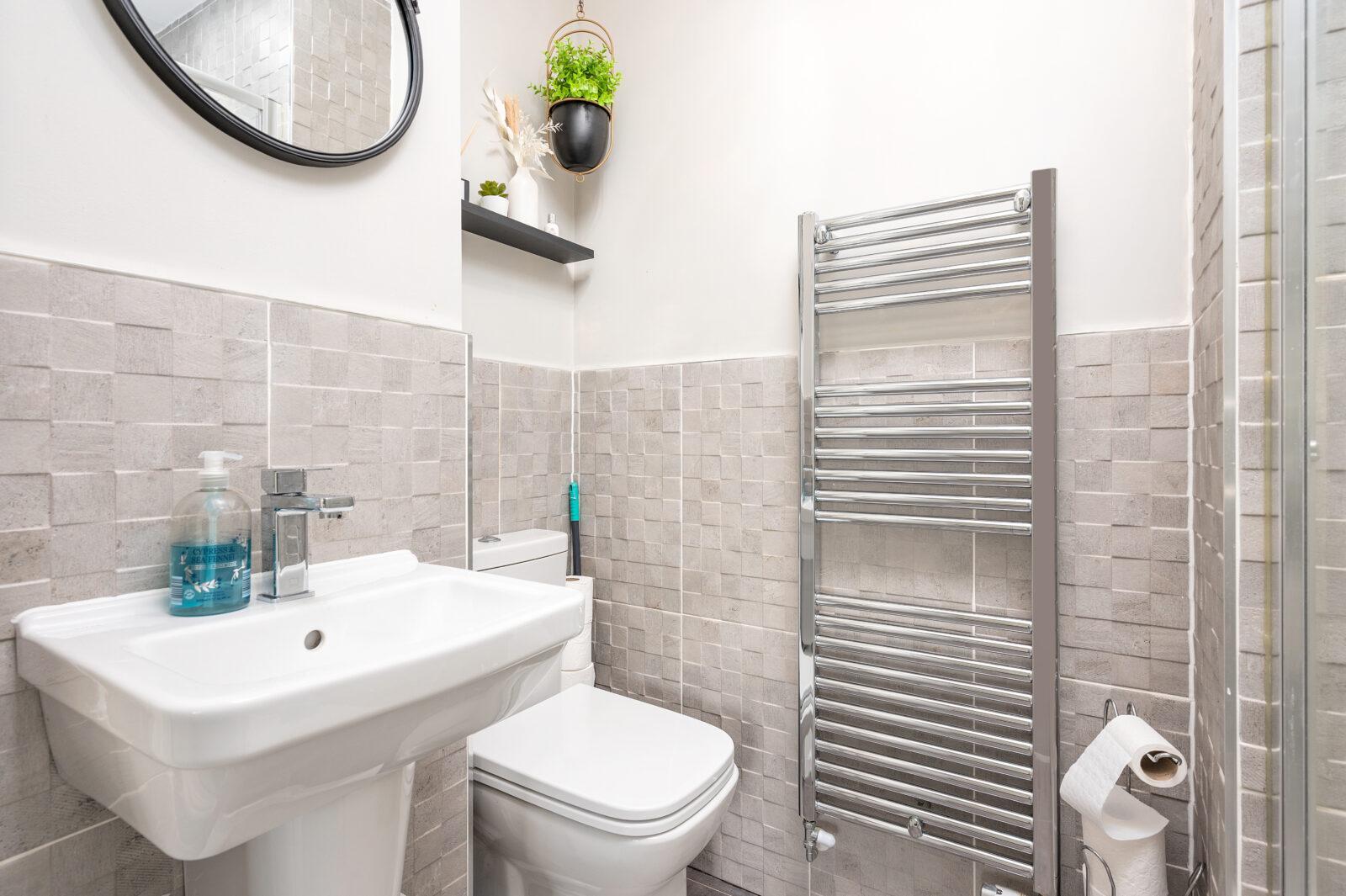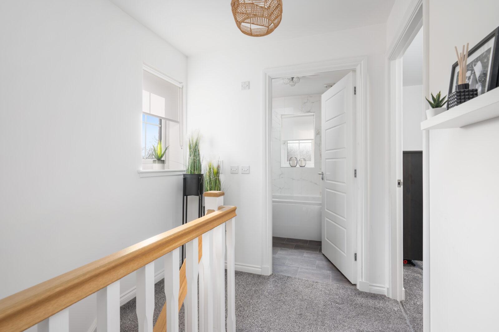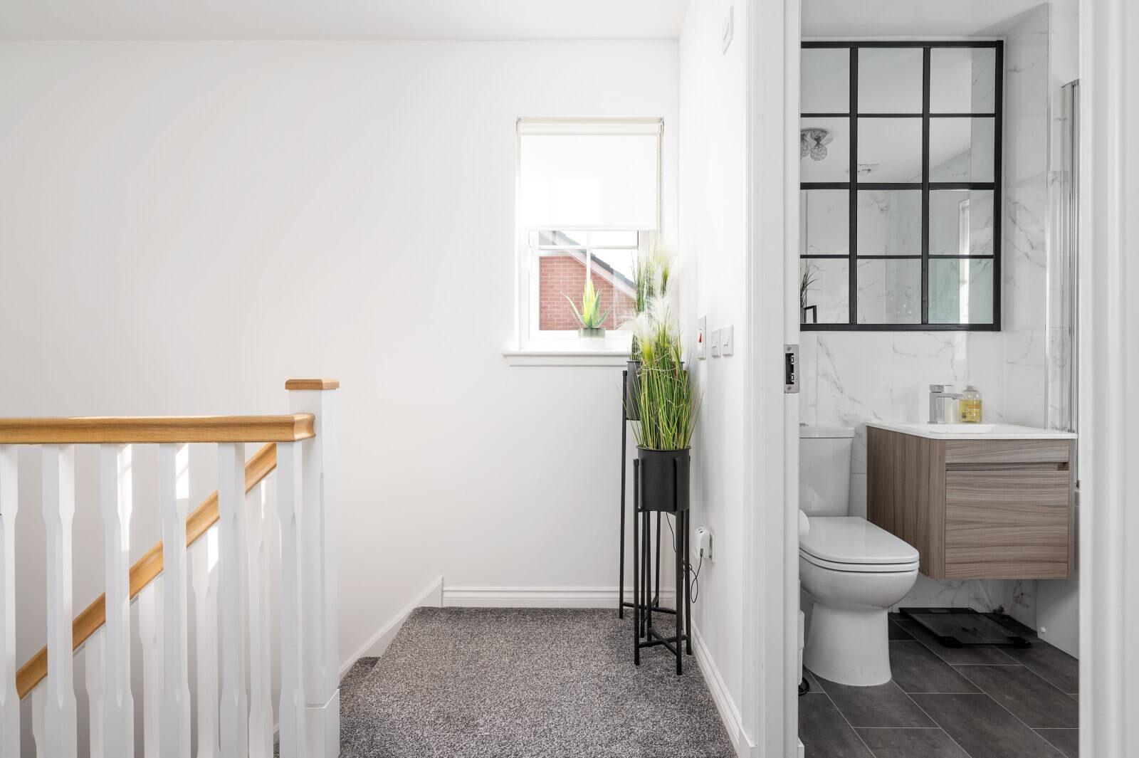On the upper level, the light and airy hallway leads to the impressive three generous size bedrooms which are recently modernised and offer good size accommodation. The master bedroom benefits from its own ensuite facilities and includes WC, wash basin, shower cubicle with feature wall tiling and chrome accessories.