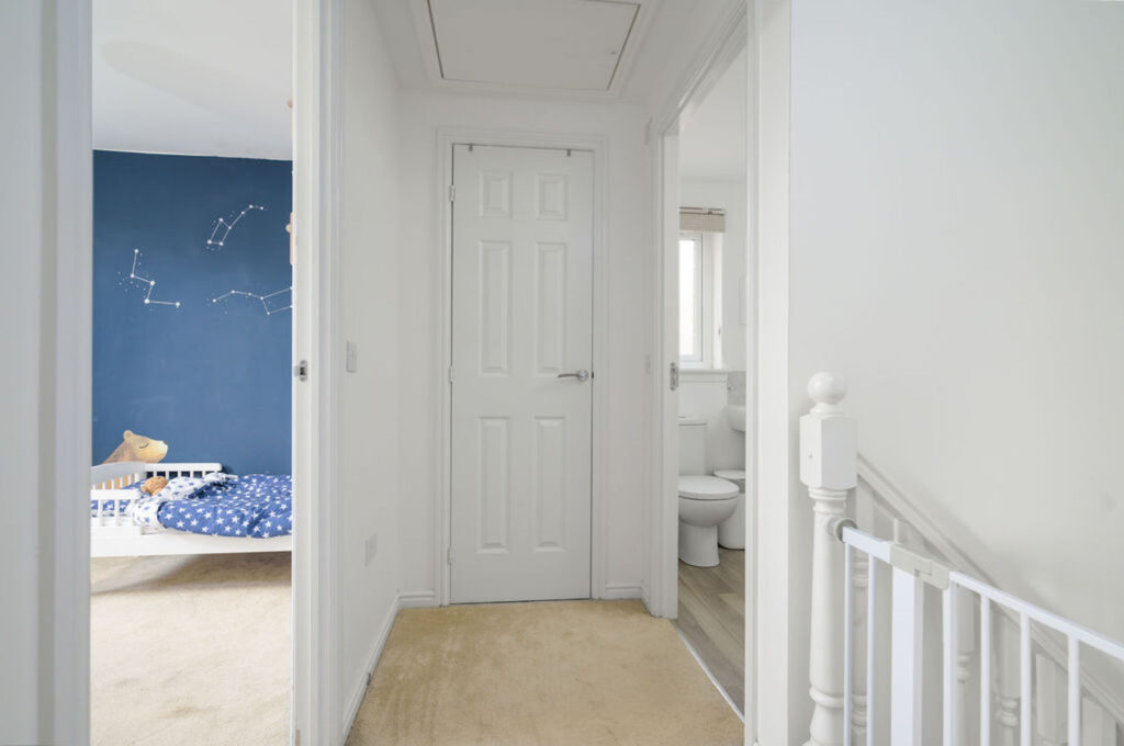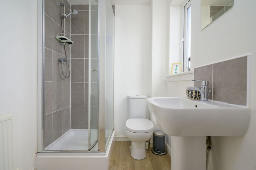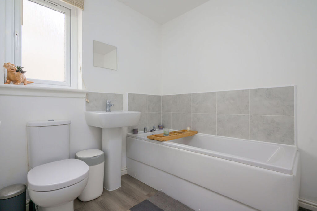 On the upper floor are three well proportioned bedrooms with the master bedroom benefitting from fitted wardrobes and it’s own ensuite facilities. The family bathroom has a contemporary white suite and splash back tiling.