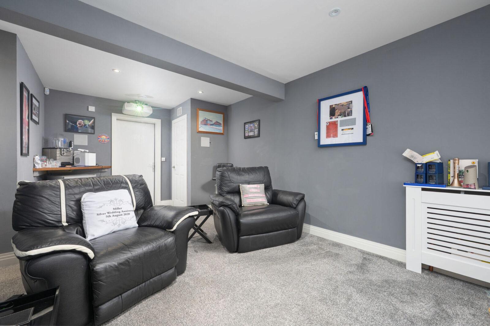 The property is further enhanced with gas central heating, double glazing, excellent storage throughout, formal lounge with glass fireplace, open plan kitchen/family area, all integrated appliances included, professionally converted garage with 138inch smart projector/game room, two ensuite bedrooms, all bedrooms have fully fitted wardrobes, built in sound system to entire lower floor, house alarm , CCTV, rear garden with fully enclosed hot tub area, summerhouse, high specification throughout the entire house and more..