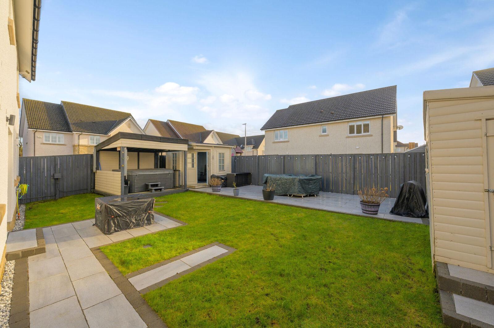 Externally to the front of the house is a private mono blocked driveway enough for three cars, the garden is predominantly laid to lawn, complemented by plants and shurbs. The side gate leads to the generous sunny rear garden which has been professionally done, laid to lawn surrounding 6ft fence for extra privacy, porcelain tiling, fully enclosed hot tub area with composite decking, summerhouse which has power and light and large storage units which are included in the sale. There is a large tiled patio the perfect place for outdoor entertaining and sunny days.
