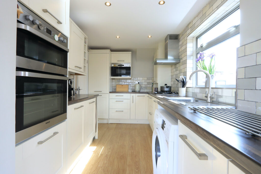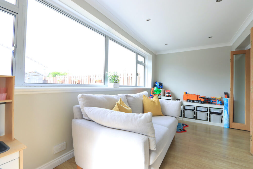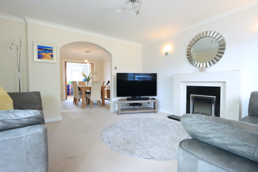 As you enter the property you are firstly welcomed into the light and airy hallway with modern parquet style flooring. The front facing lounge has a large window which floods the room with natural light. The lounge is open plan to a well proportioned dining area which is the perfect space for family living or entertaining. Glazed doors from the dining area gives access to a family room at the rear of the property which offers additional family living space and overlooks the rear garden. A modern fitted kitchen, which can be accessed from both the dining area and family room, has been fitted with a good range of base and wall units and benefits from integrated dishwasher, fridge freezer and wine cooler.