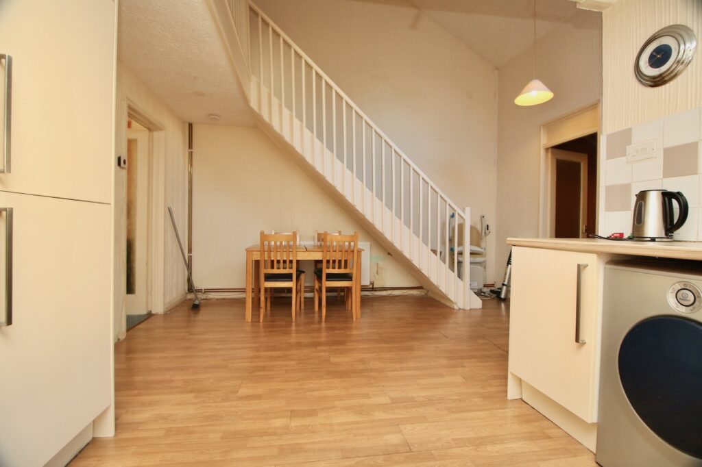 As you enter the property you will be immediately impressed with the natural light pouring through the lower floor of this home. The kitchen has been recently remodelled giving generous wall and base units along with gas hob, oven, washing machine, integrated fridge/freezer which are included in the sale. The kitchen is complete with cream gloss doors, ceramic wall tiling and chrome accessories. As you enter the lounge/dining area you are immediately impressed by the generous size of this room with convenient back door access leading to the rear garden. To compete the ground floor is bedroom three which is a single room, ideal for bedroom space or home working.