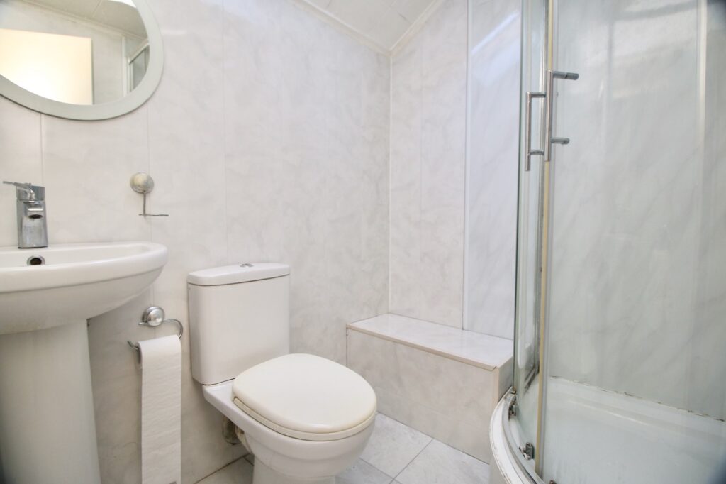 On the upper level, the light and airy hallway leads to two impressive double bedrooms which are pleasing to be in and offer good size accommodation and great storage. The family shower room has been fully fitted with floor to ceiling wall tiles, corner shower cubicle, WC, wash basin and chrome accessories.