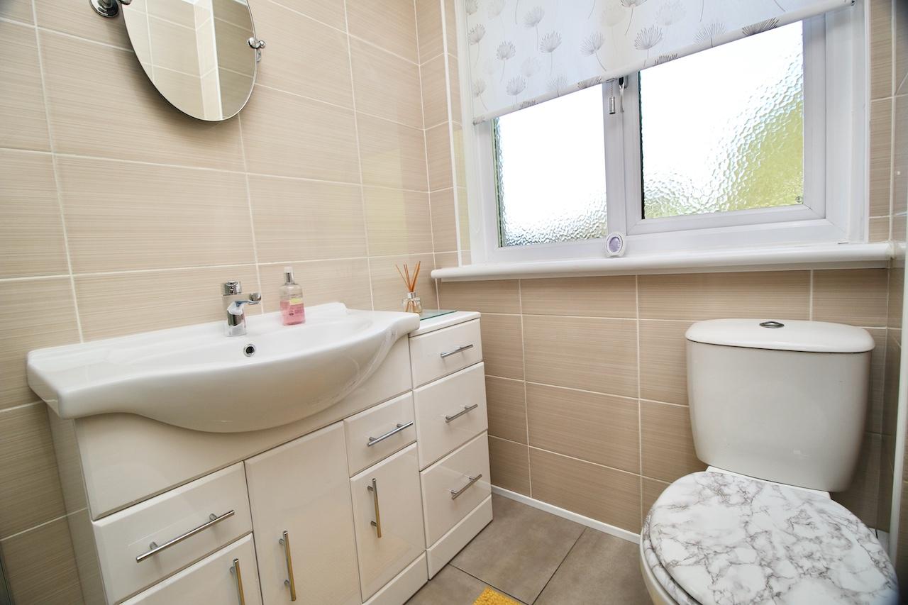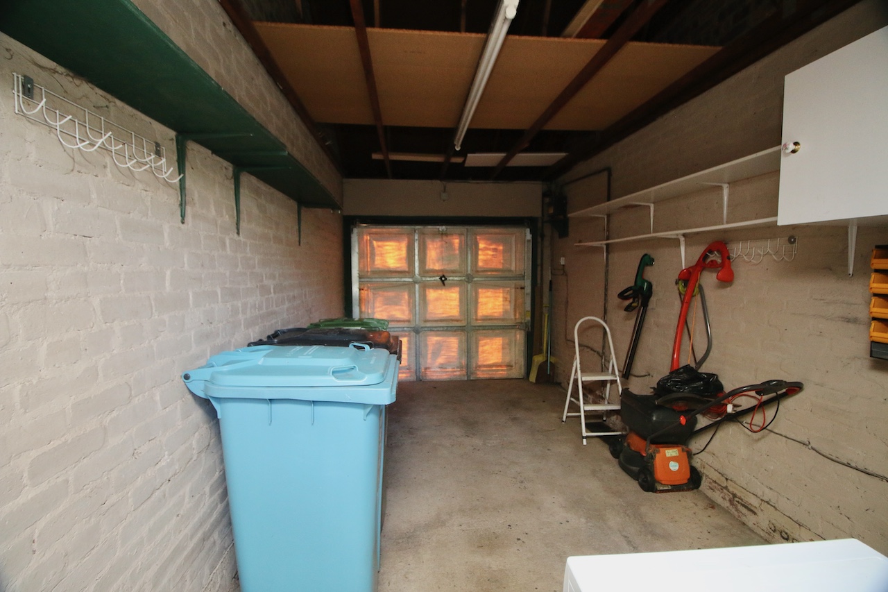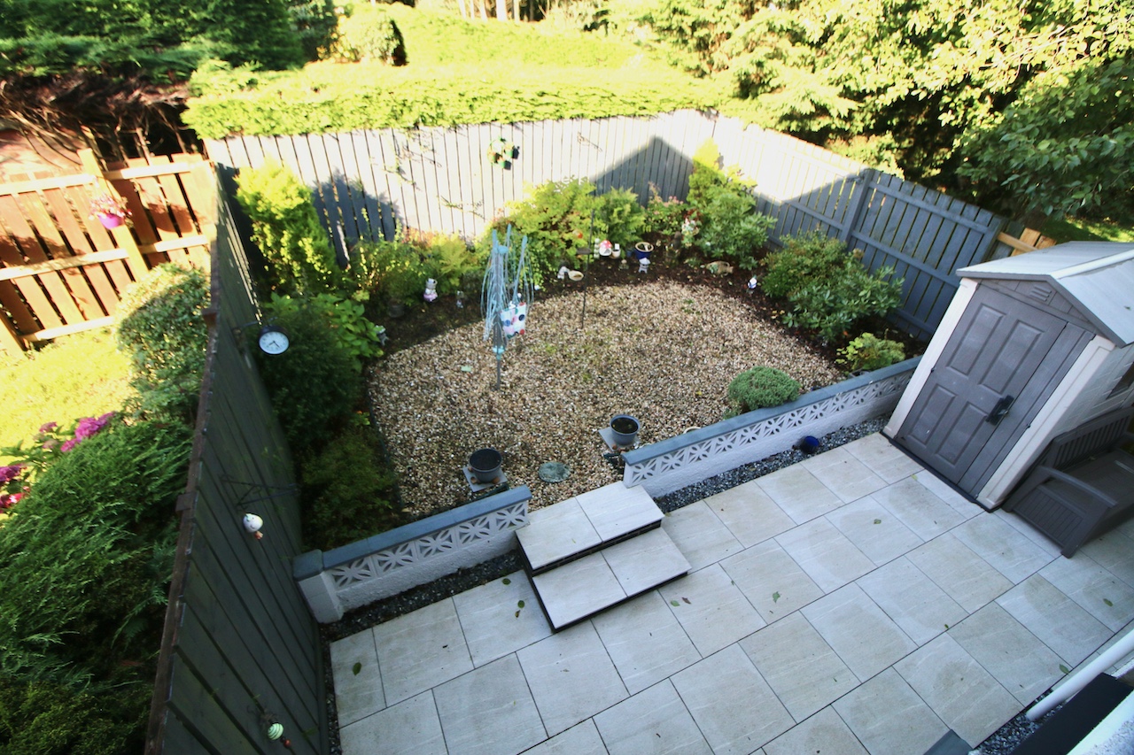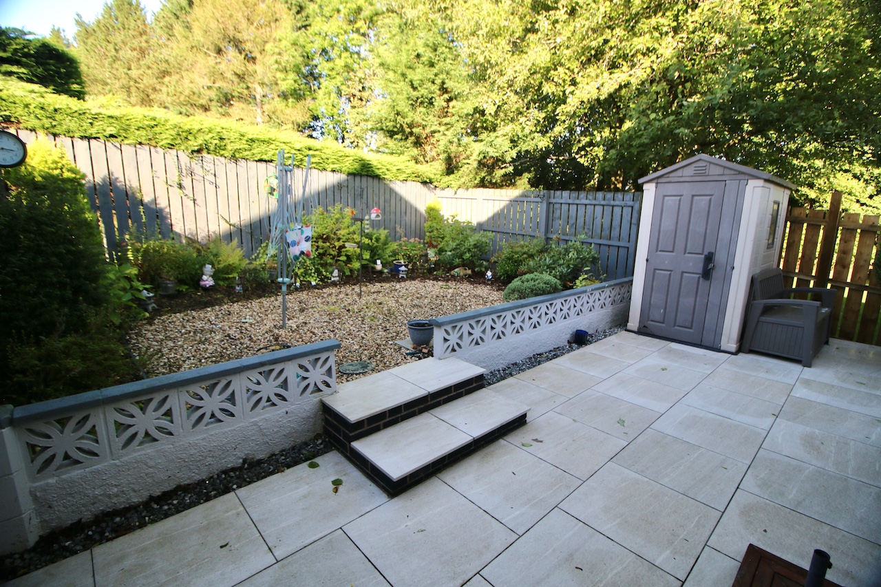 The rear garden has been designed for minimal maintenance and includes a tiled patio area perfect for outdoor entertaining/sunny days,  a periphery of plants, trees, shurbs, 6ft surrounding fence ideal for extra privacy and garden shed which is also included in the sale. The garage has back door access from the rear garden and has power and light.  To the front of the property the garden is laid to lawn with a private driveway and integral single garage.