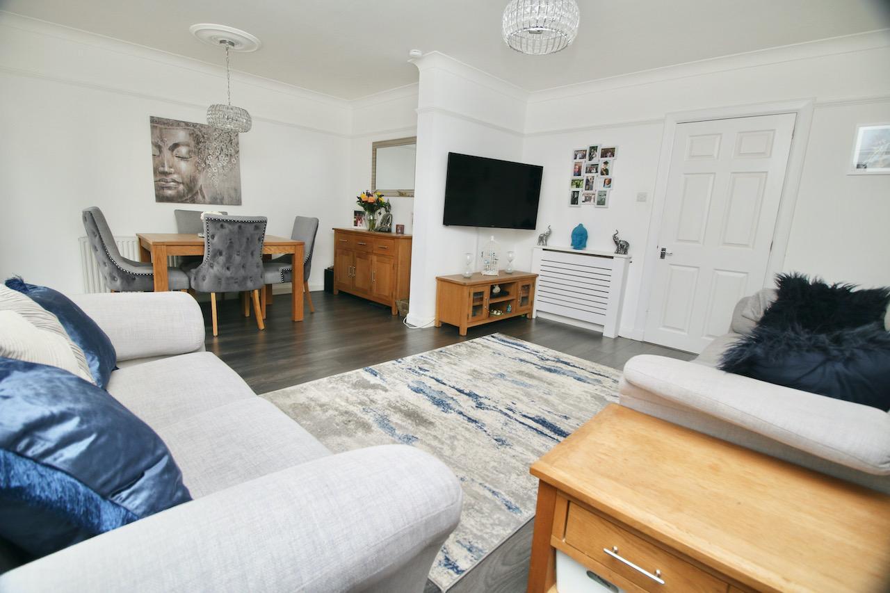 The inviting hallway provides access to all accommodations on offer and the property has been tastefully decorated throughout to offer contemporary living. As you enter the open plan lounge/dining area you will be immediately impressed by the size of room with double glazed windows which flood the room with natural light and French doors which access onto the rear garden. This area also has space for informal dining which is the perfect place for family mealtimes or entertaining. The modern kitchen has been fitted with an excellent range of base and wall units and includes gas hob, oven, washing machine, fridge freezer, dishwasher which are included in the sale. The kitchen is complete with white gloss handless doors, feature up stand and chrome accessories.