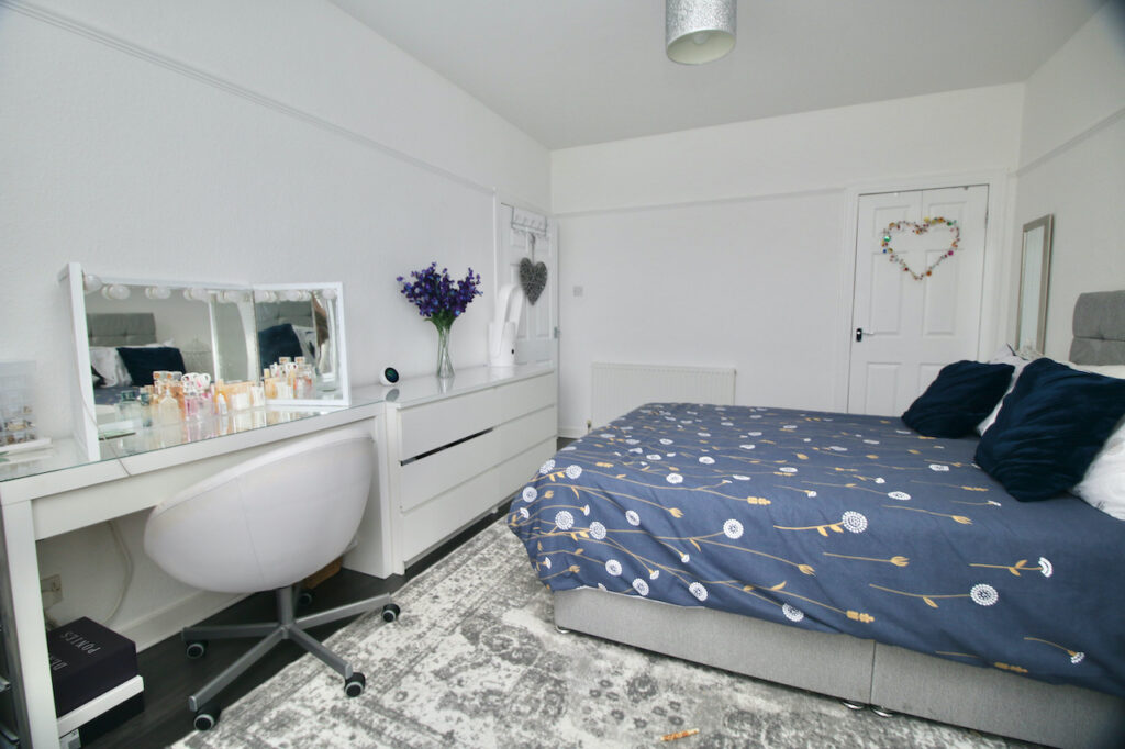 The two double bedrooms are a generous size and pleasing to be in with both having their own wardrobe storage along with the master bedroom having a feature bay window. Finally the spacious shower room with walk in double cubicle, feature waterfall shower, WC, wash basin complete with stylish wet wall, white vanity furniture and chrome accessories. To complete the accommodation is a convenient utility store, perfect for keeping laundry out of sight.