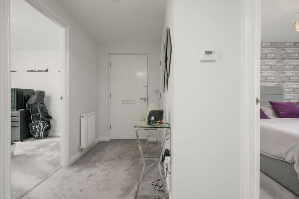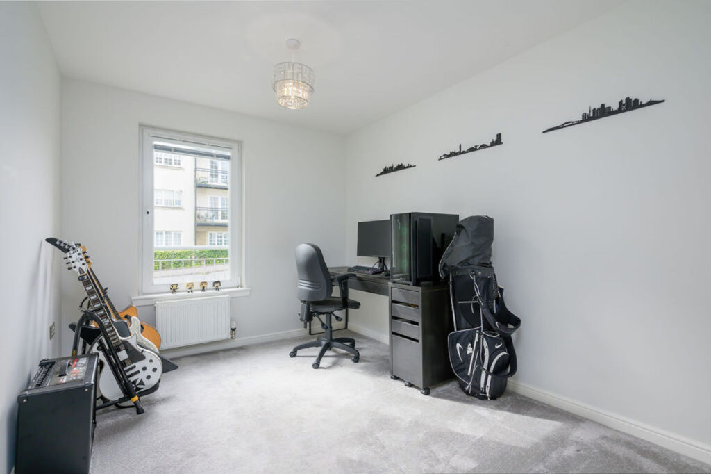 Both bedrooms are neutrally decorated and offer double sized bedrooms, with master bedroom enjoying fitted wardrobe storage. The family bathroom has been beautifully upgraded to include a contemporary white suite with modern ceramic tiling, designer towel warmer, wall hung vanity wash basin and shower over bath with glass screen.