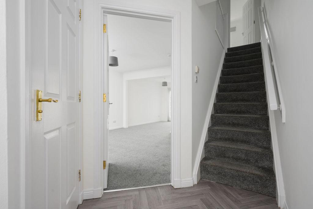 On the upper level, you'll find three generously sized bedrooms, offering comfort and privacy for the entire family. Two of the bedrooms boast fitted storage solutions, optimising space and organisation. The family bathroom completes the upper floor, featuring a white three piece suite with electric shower over the bath, catering to daily routines with ease.