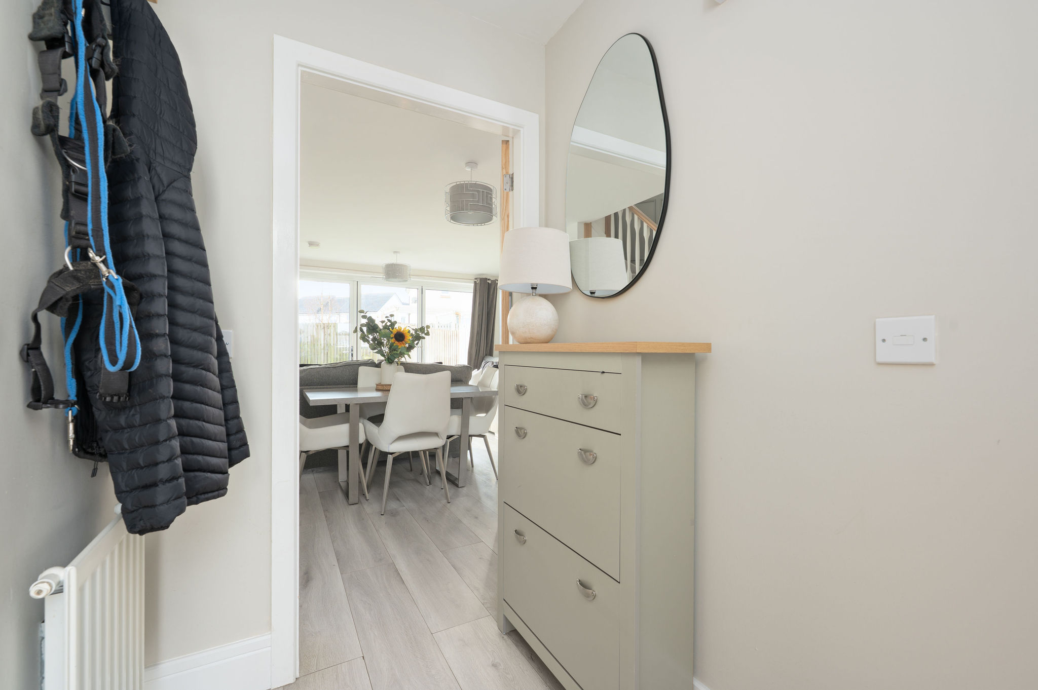 Upstairs, there are three well-proportioned bedrooms offering excellent flexibility for family living, guests or home working. The principal bedroom benefits from fitted wardrobe storage, while a stylish family bathroom, featuring quality fixtures and elegant Porcelanosa tiling completes the accommodation. Each room is beautifully decorated in fresh, modern tones, allowing the next owner to move straight in and enjoy.