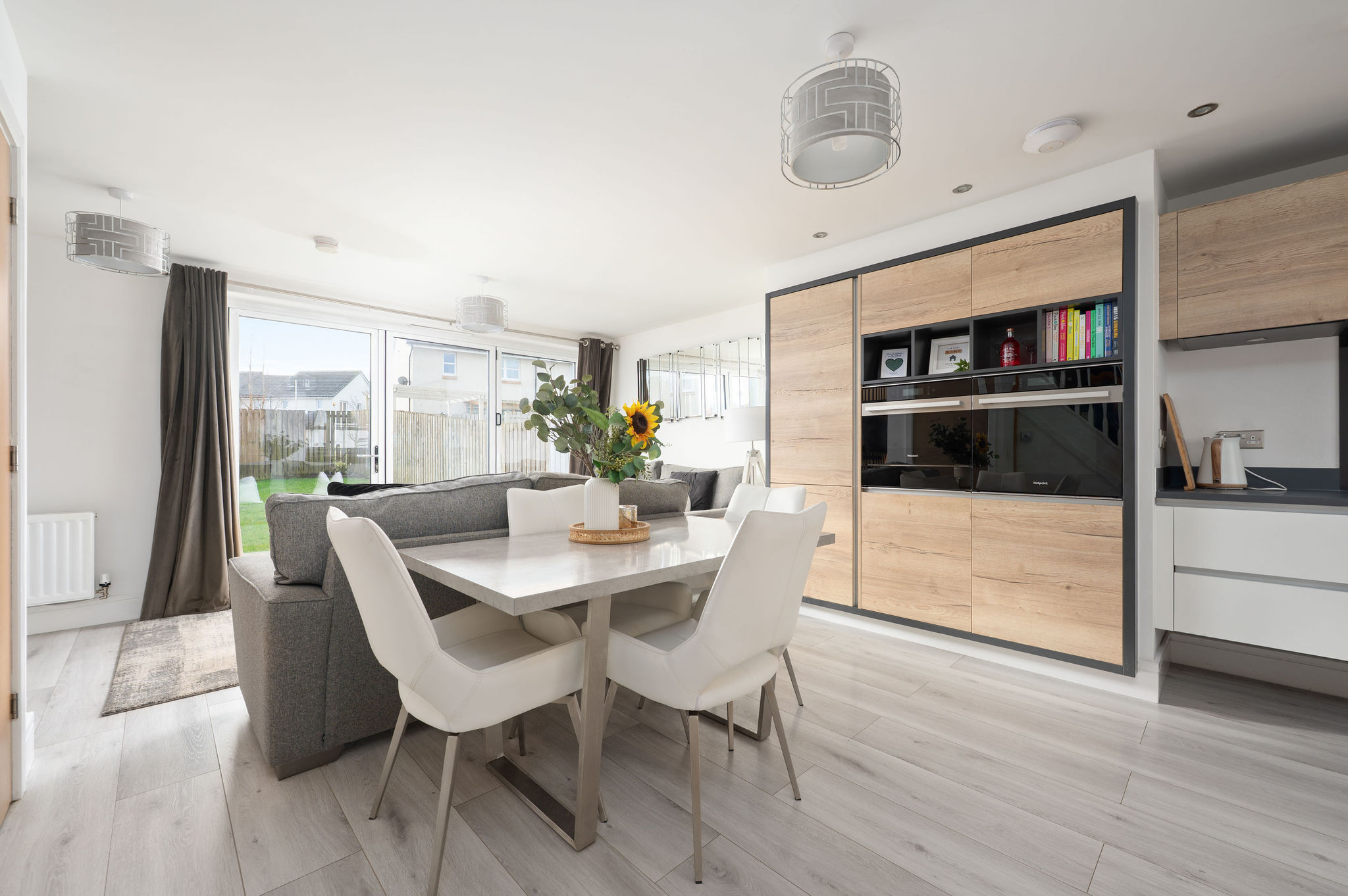 Internally, the property exudes style and comfort from the moment you step into the welcoming reception hallway, complete with a convenient downstairs WC. The heart of the home is the bright and spacious open-plan lounge, dining and kitchen area, thoughtfully designed for modern living. Flooded with natural light from elegant bifold doors that create a seamless connection to the rear garden, this impressive space is perfect for both everyday family life and entertaining. The contemporary kitchen is a true showpiece, finished to an exceptional standard with sleek cabinetry, integrated appliances and generous work surfaces.