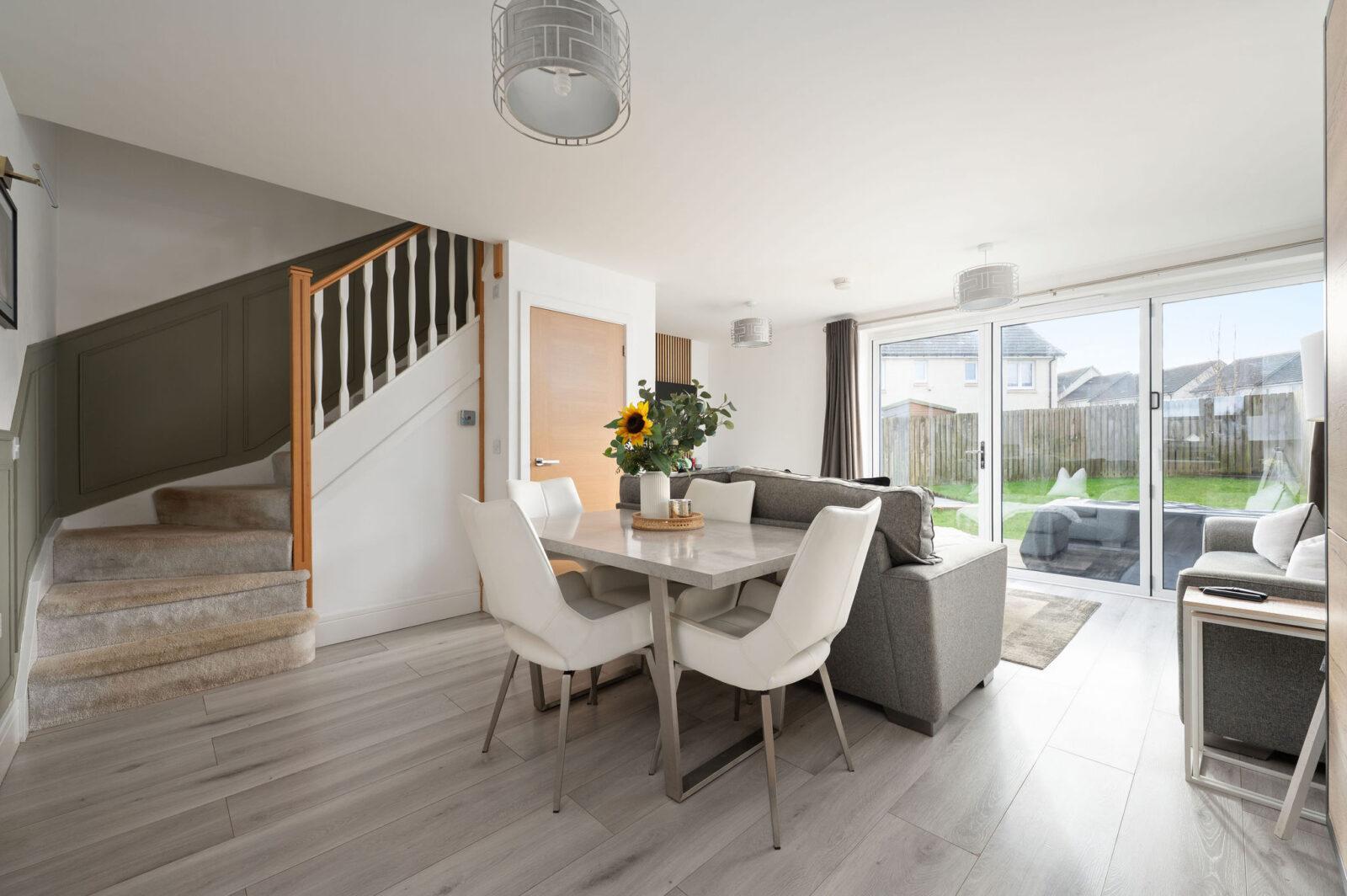 Located within one of Denny’s most sought-after residential estates, this beautifully presented three-bedroom end-terrace villa offers contemporary living in immaculate, walk-in condition. Boasting modern design, exceptional presentation and a prime position close to local amenities, reputable schools and excellent transport links, this outstanding home will appeal to a wide range of buyers, including those seeking flexible work-from-home opportunities.