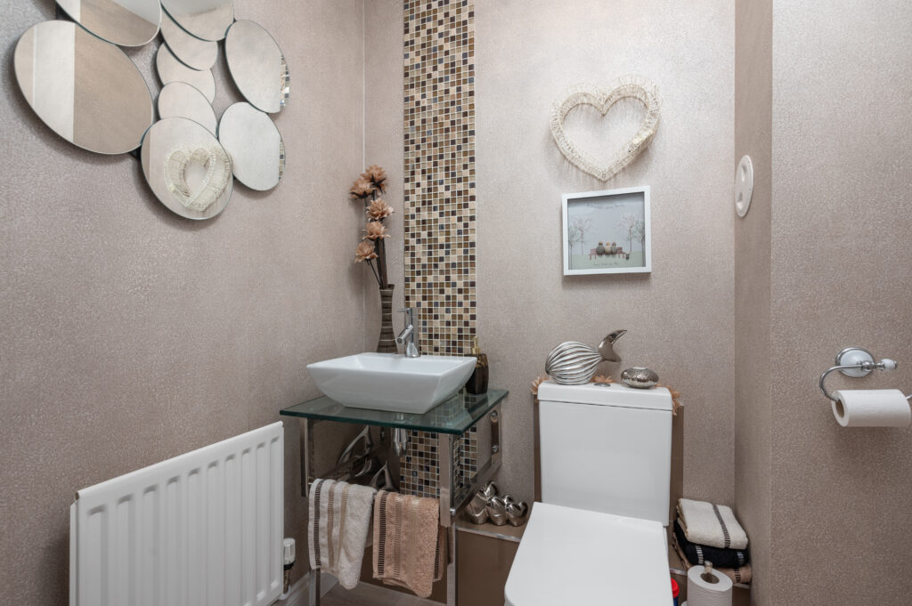 On the upper level are five well proportioned bedrooms, which all benefit from their own wardrobe storage. The master bedroom has the real wow factor with impressive dimensions and enjoys its own ensuite facilities complete with shower cubicle, WC, wash basin finished with latte gloss vanity furniture. The property has an additional Jack and Jill ensuite facilities which includes; shower cubicle, WC, wash basin finished with white vanity furniture. The family bathroom is generous in size complete with WC, wash basin, bath, separate double shower cubicle finished with white vanity furniture.