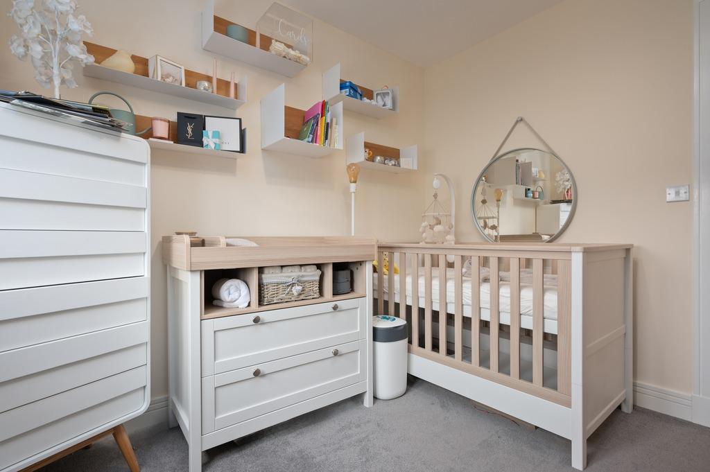The master bedroom is front-facing and benefits from a fitted wardrobe and an en-suite shower room. Two further bedrooms are situated at the rear, with bedroom 2 also benefiting from a fitted wardrobe. The family bathroom includes modern vanity furniture and a shower over the bath, ensuring comfort and convenience for all residents.
