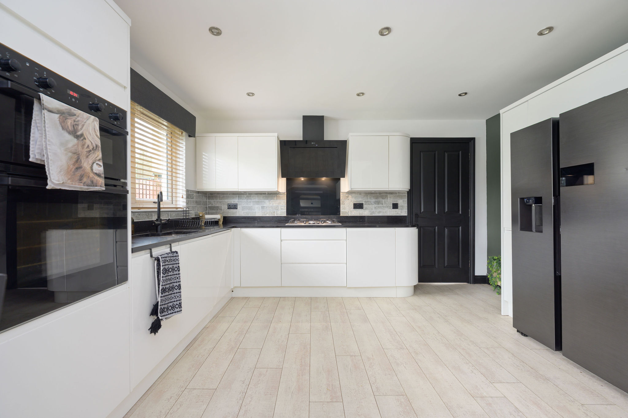 As you enter the welcome reception hallway you will be immediately impressed by the contemporary interiors throughout this property. The formal lounge you will be immediately impressed by the proportion of the room with front facing windows which flood the room with natural light. The lounge is beautifully decorated offering true walk in condition with its feature fireplace and herringbone flooring. The converted garage is currently being used as an additional Tv room which is bright and spacious and is the perfect space for children or could be utilised as a 6th additional bedroom. The real wow in this property is the open plan kitchen, dining and family room making this area the heart of the home. The modern kitchen has been upgraded and fitted with an excellent range of base and wall units complete with five burner gas hob, integrated dishwasher finished in white high gloss and black granite worktop. The dining area is a perfect spot for morning coffee or family mealtimes, with additional kitchen units and worktops for extra storage. The open plan family room overlooks the rear garden with sliding door access onto a private patio, this is the ideal area for families to gather for cinema or relax time. The convenient utility room is perfect for separate laundry duties with back door and garage access. Completing the ground floor is a bra new contemporary WC and excellent storage.