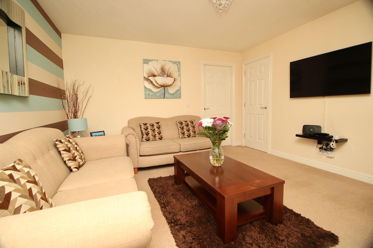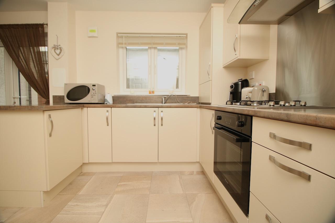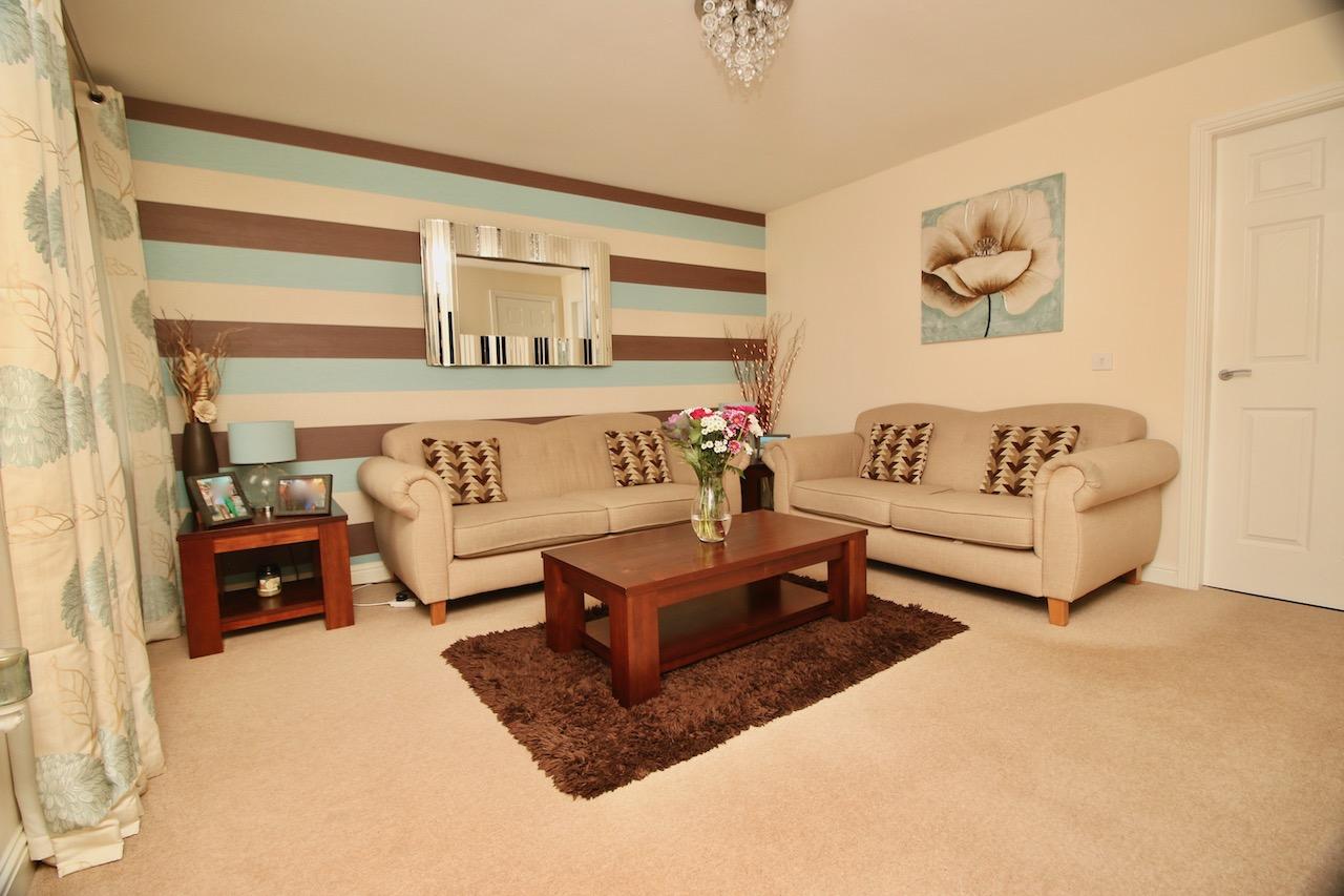 As you enter the property you are welcomed by the reception hallway which leads to all accommodations on the lower and upper floor. The bright front facing lounge is sure to impress by the generous proportion of the room with large double glazed windows which flood the room with natural light. The contemporary open plan kitchen enjoys an excellent range of base and wall units complete with gas hob, oven, integrated appliances include washer/dryer, fridge freezer which are all included in the sale, finished with matt latte doors, chrome accessories and ceramic floor tiling. There is additional space for informal dining which is the perfect area for family mealtimes or entertaining with patio doors which open onto the sizeable rear garden. To complete the ground floor is the convenient WC and plenty of storage.