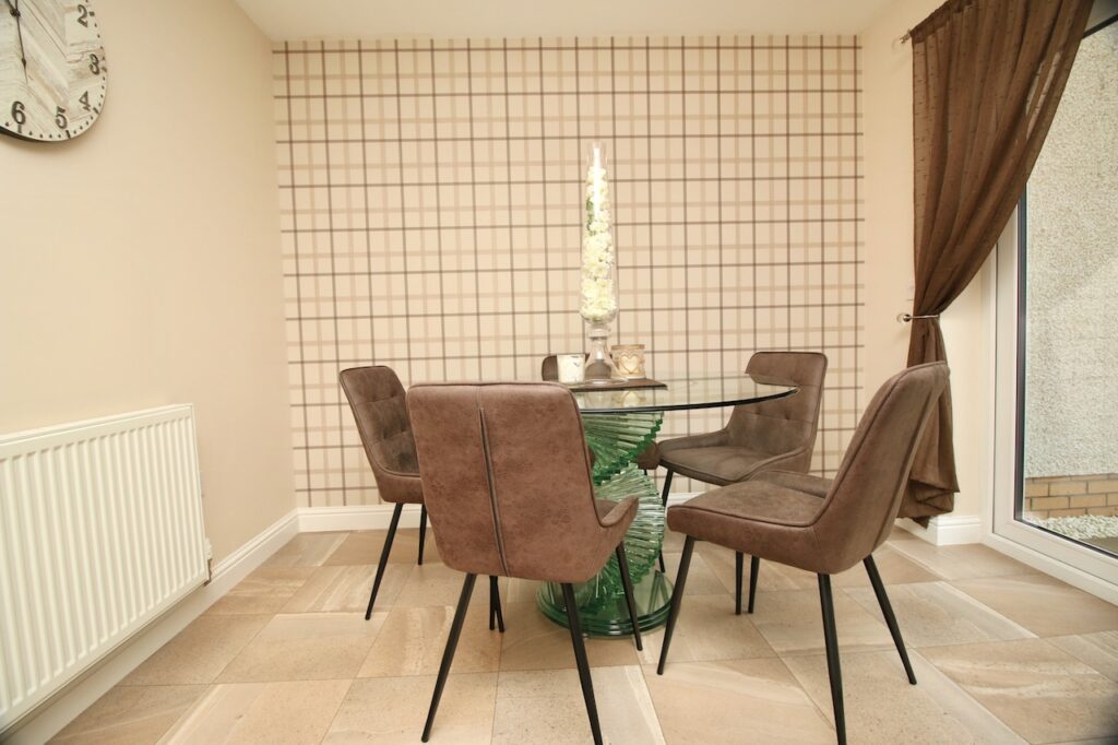 As you enter the property you are welcomed by the reception hallway which leads to all accommodations on the lower and upper floor. The bright front facing lounge is sure to impress by the generous proportion of the room with large double glazed windows which flood the room with natural light. The contemporary open plan kitchen enjoys an excellent range of base and wall units complete with gas hob, oven, integrated appliances include washer/dryer, fridge freezer which are all included in the sale, finished with matt latte doors, chrome accessories and ceramic floor tiling. There is additional space for informal dining which is the perfect area for family mealtimes or entertaining with patio doors which open onto the sizeable rear garden. To complete the ground floor is the convenient WC and plenty of storage.