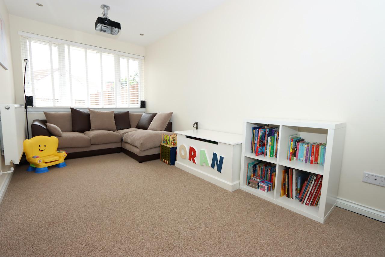 You will be immediately impressed with the contemporary lounge which has a front facing window, which floods the room with natural light. The dining kitchen is stylish and spacious, boasting a good range of base and wall units, with space for dining, it is perfect for family mealtimes or entertaining. Leading from the kitchen via beautiful french doors is the well maintained rear garden which has been laid to lawn with a decking area, providing an ideal outdoor space for summer BBQs and outdoor entertaining. The garage has been professionally converted to create flexible accommodation, either as a family room, playroom, home office or as a 4th bedroom. The WC completes the lower accommodation.