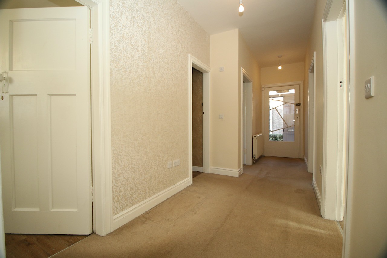 Welcoming you inside is the hallway with a useful storage cupboard and from here you can access all lower accommodations. Step into the heart of the home: the spacious lounge with beautiful bay window and gas fireplace, the perfect space for family living and entertaining. A second public room, equally as impressive would make the perfect family room or a grand dining room. The contemporary kitchen is well equipped with ample base and wall units, integrated fridge freezer and oven, gas burner hob and hood. Completing the ground floor is the first of three double bedrooms and a three-piece bathroom suite.
