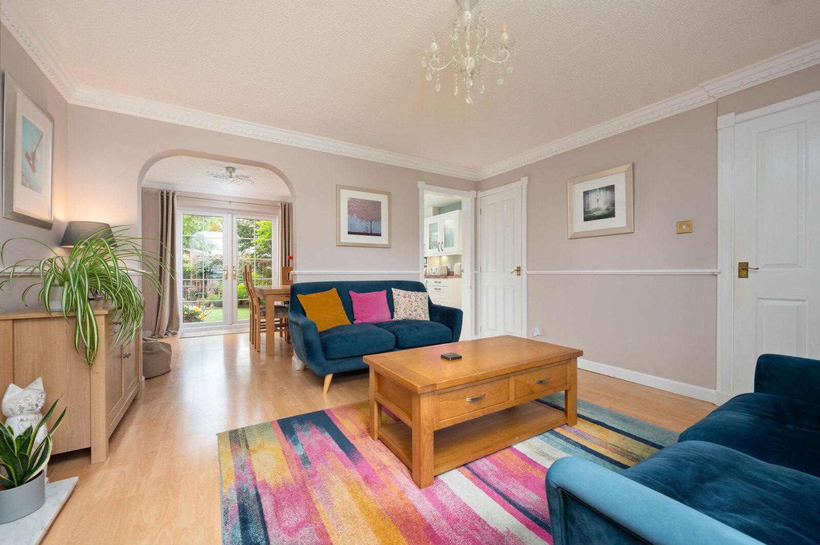 The home is framed by its beautifully tended gardens and attractive frontage, creating an immediate sense of welcome. Inside, the ground floor features a versatile layout, including the option of a fourth bedroom, ideal for guests, a home office, or additional family living.