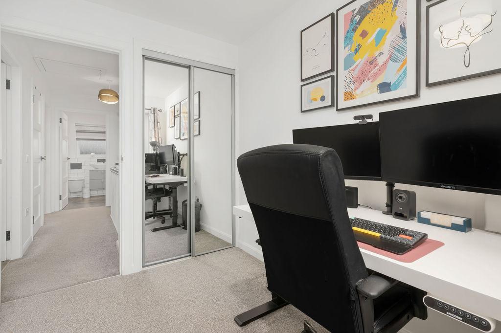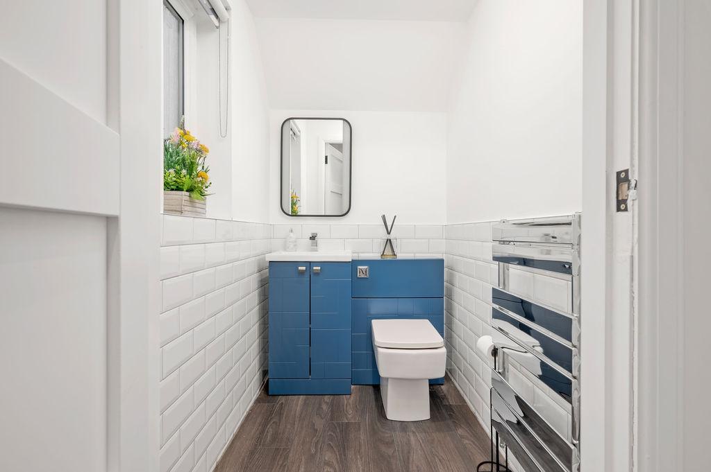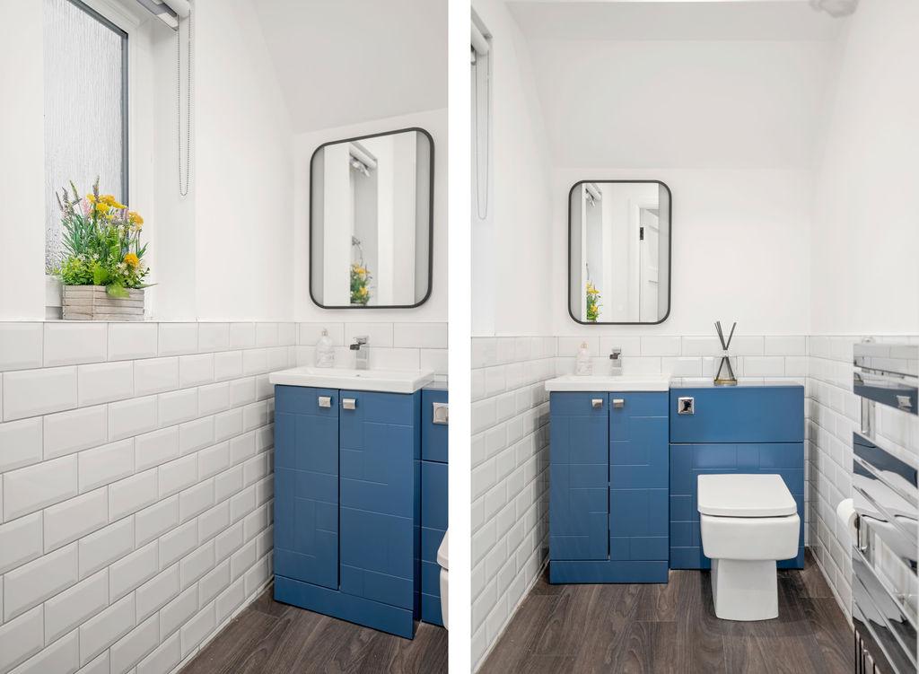 Upstairs, you'll find three generously sized bedrooms, each equipped with fitted wardrobes ensuring excellent storage. The modern family bathroom is equipped with a sleek white suite, complete with a shower over the bath, contemporary black fittings and vanity storage.
