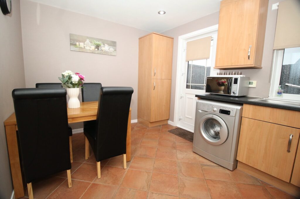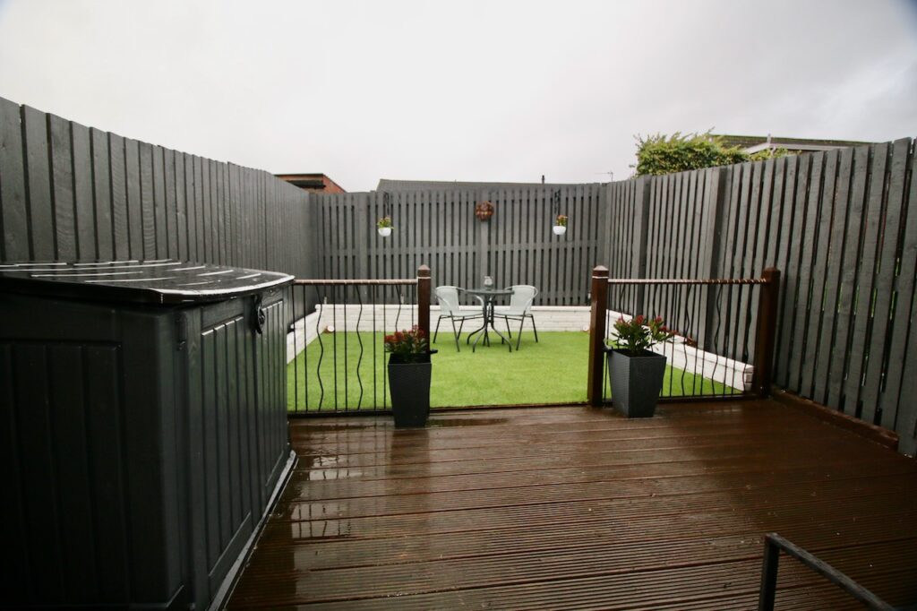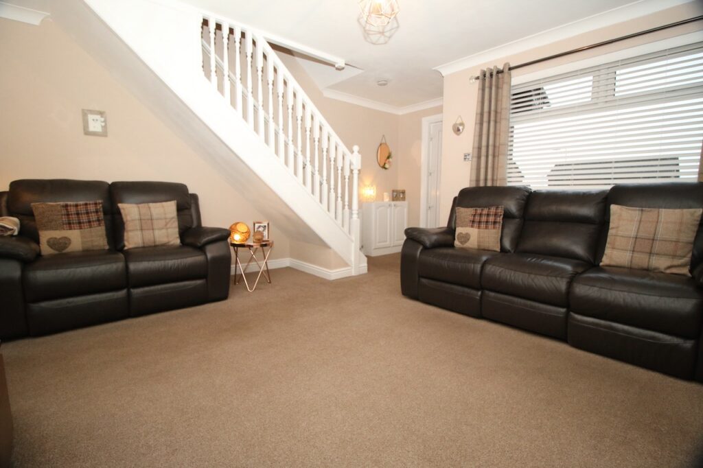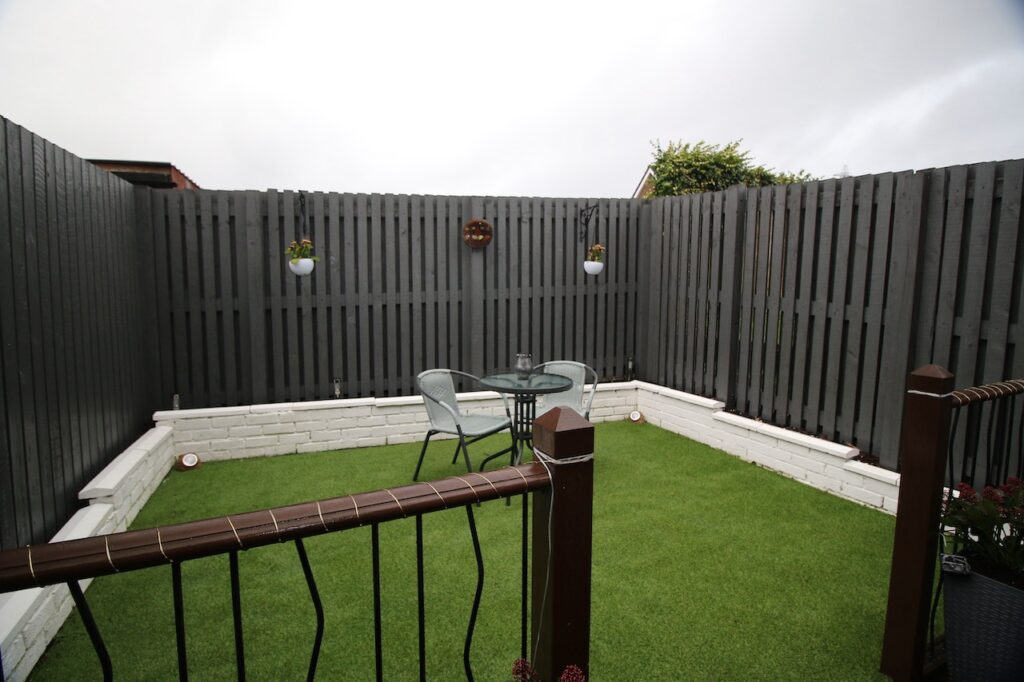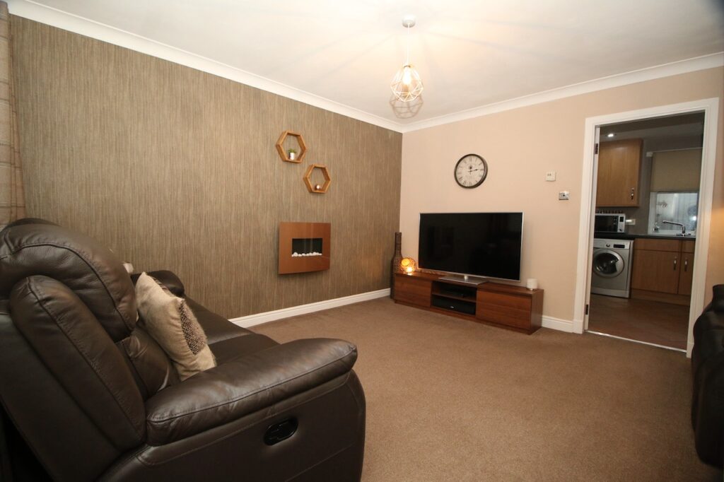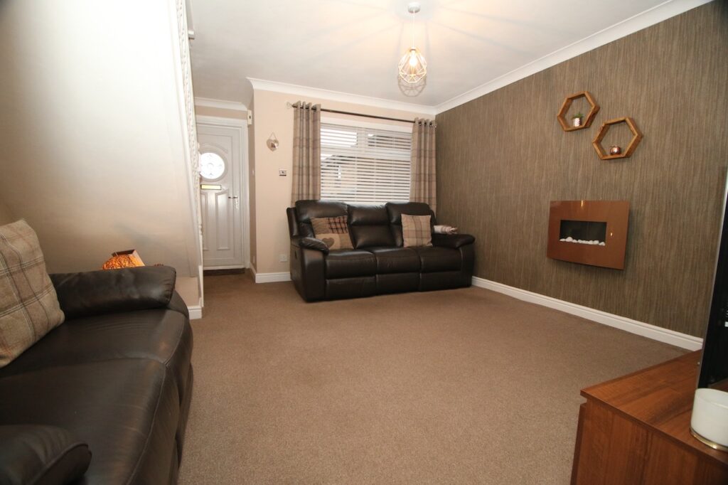 As you enter the lounge, you will be immediately impressed with the open plan living with and modern decor. A contemporary fireplace creates both a warm reception and a beautiful focal point. The kitchen offers space for dining; perfect for family mealtimes or entertaining and has been finished in wood effect units with complimentary black work surfaces. The fully enclosed rear garden provides the ideal space for relaxing, complete with attractive decking with a modern decorative handrail which leads to the artificial grassed area promising year round low maintenance.