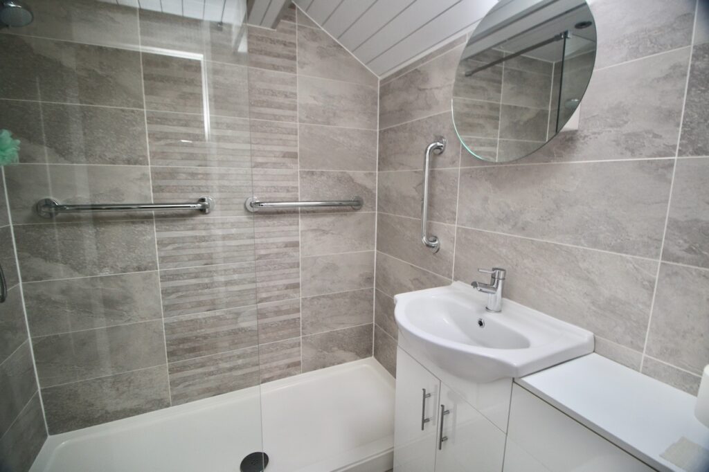 On the upper level, the light and airy hallway leads to impressive two double bedrooms which are pleasing to be in and offer good size accommodation with the added benefit of excellent storage. The newly fitted shower room complete with walk in double shower cubicle, WC, wash basin finished with contemporary wet wall and white gloss vanity furniture.