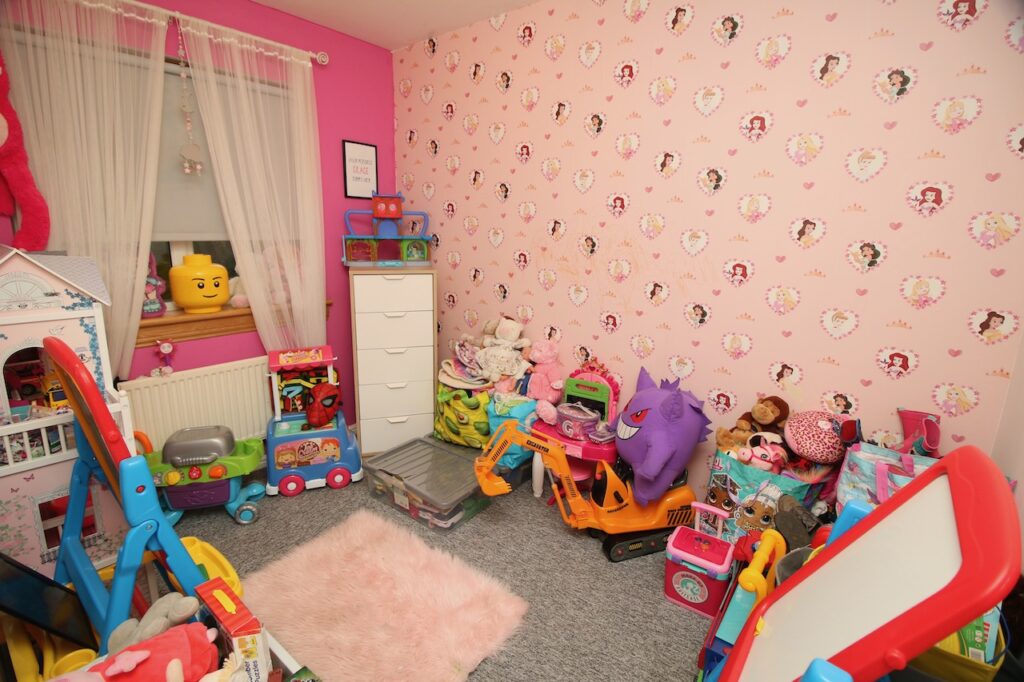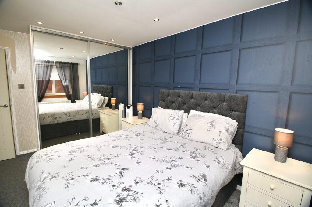 On the upper level are four well proportioned bedrooms, two of which benefit from their own fitted wardrobes. The master bedroom has the real wow factor with impressive dimensions and enjoys its own ensuite facilities complete with; separate shower cubicle, WC, wash basin finished with full height wall and floor tiles with vanity furniture. The spacious family bathroom comes complete with floor to ceiling ceramic tiling, white 3-piece suite, overhead shower/screen, vanity furniture and chrome accessories.