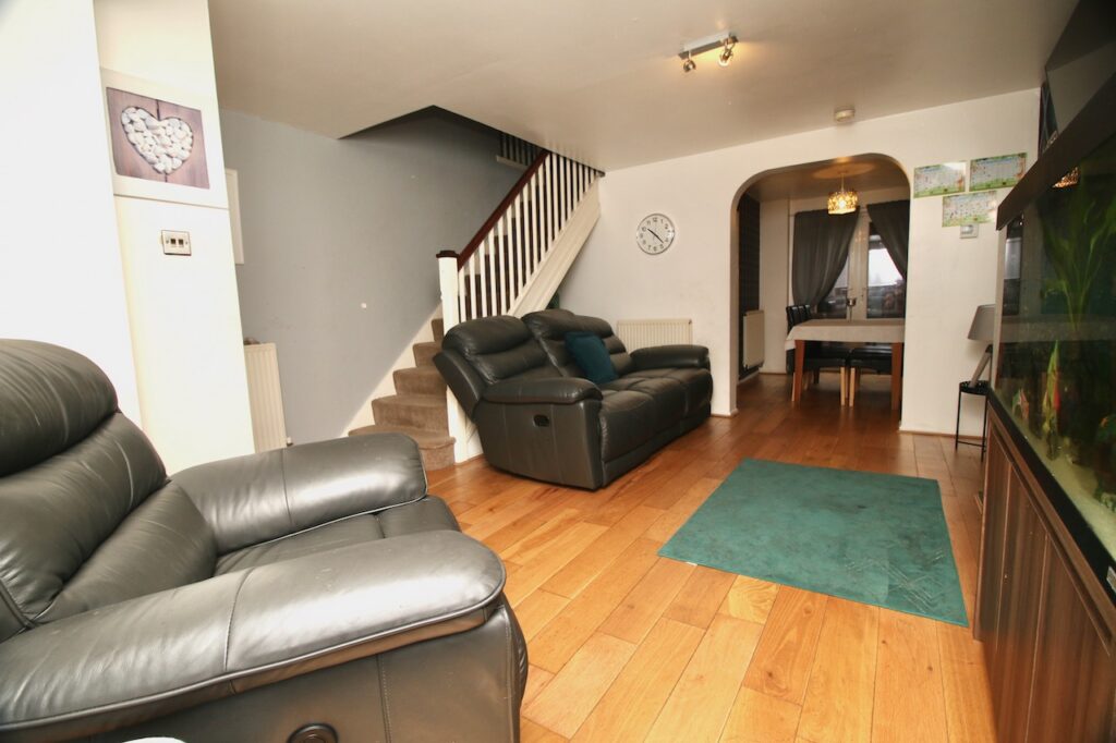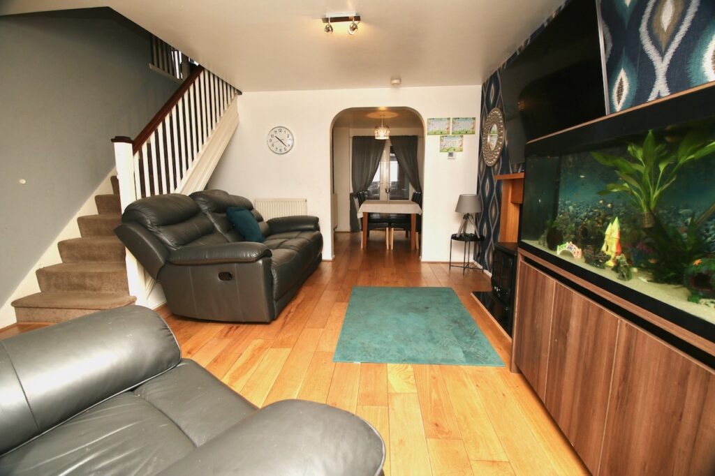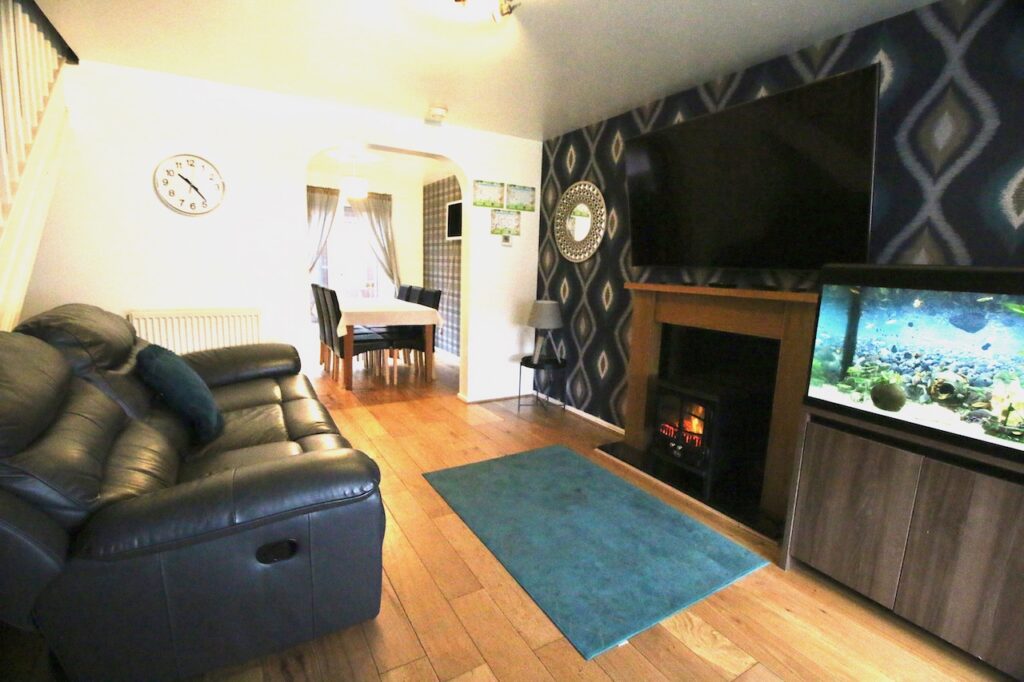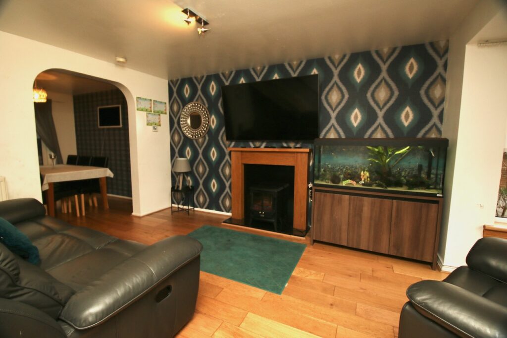 As you enter the property you are welcomed by a practical entrance vestibule leading into the lounge/dining area. The lounge is of a generous size with front facing bay windows which flood the room with natural light, the focal point of the room is the feature fireplace. The spacious dining area is perfect for family mealtimes or entertaining and has the benefit of patio doors which access the rear garden. The modern kitchen has a good range of base and wall units complete with; gas hob, oven, and appliances with ceramic wall and floor tiles. The convenient utility room is ideal for keeping laundry out of sight with handy back door access to the garage and rear garden. To complete the ground floor accommodation is a contemporary WC complete with half height wall tiling and ceramic floor tiles and white vanity furniture and excellent storage.