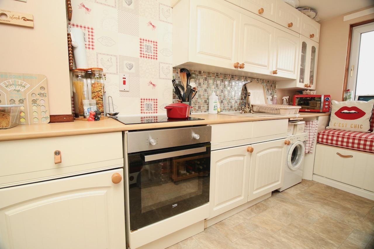 The inviting hallway provides access to all accommodations on offer and the property also boasts excellent storage with a large store being used as a utility room.As you enter the lounge/dining area you will be immediately impressed by the size of room, with a large double glazed window which floods the room with natural light. The modern kitchen is of a generous size and has been fitted with an excellent range of base and wall units. The kitchen comes complete with electric hob, oven and some appliances are included in the sale finished with shaker style doors.