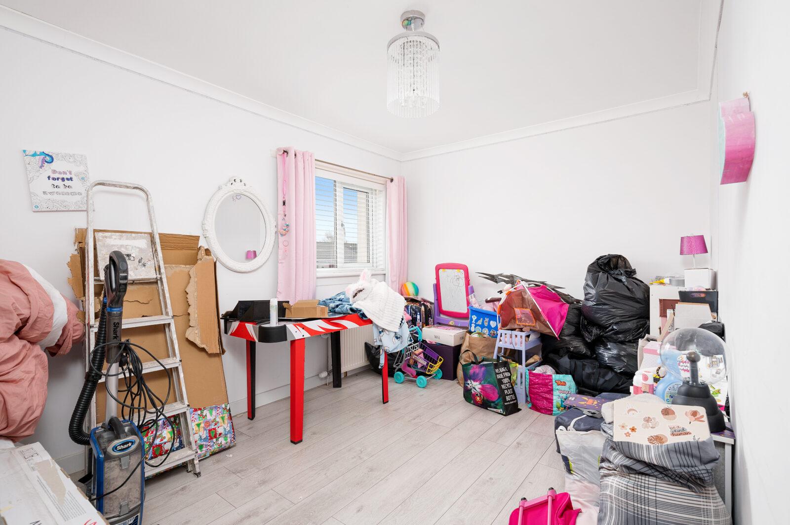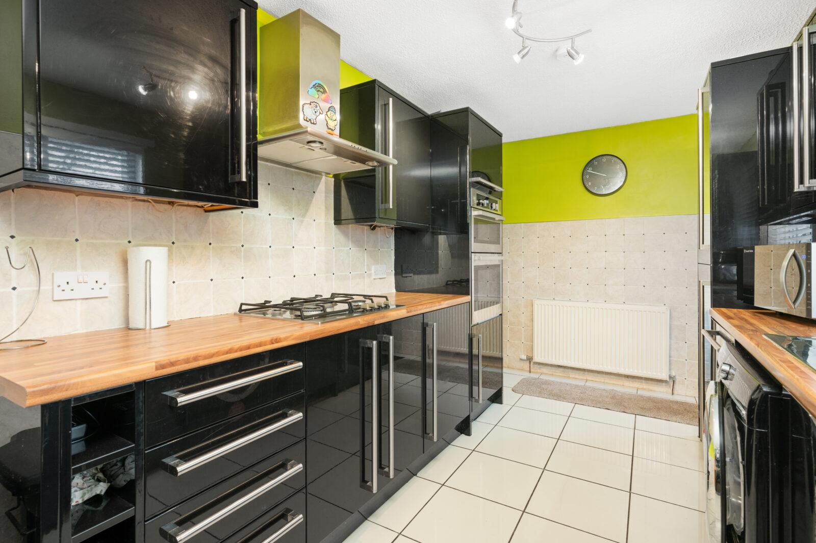 The contemporary kitchen has been recently upgraded and enjoys an excellent range of base and wall units complete with gas hob, double oven, integrated fridge/freezer, dishwasher, freestanding washing machine, tumble dryer which may be included in the sale. The kitchen is finished with black gloss units, oak worktops, half height wall tiling and chrome accessories with convenient back door access into the rear garden. To complete the ground floor is a large store room which is being used for additional storage with build in sliding wardrobes and shelving. This space could be converted into a downstair shower room, pantry or utility room.