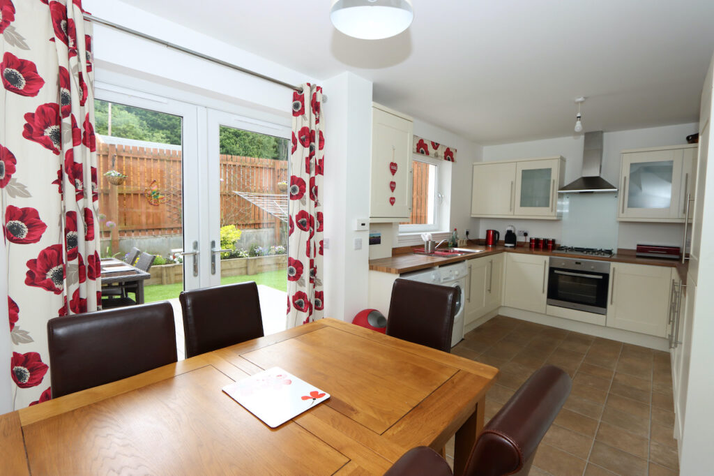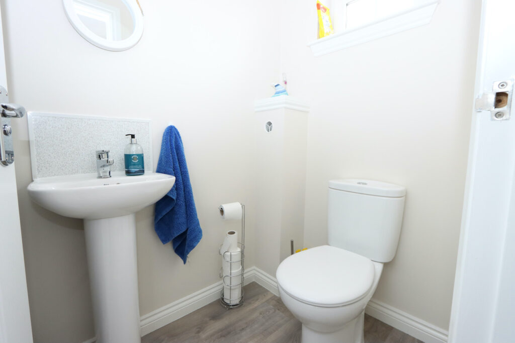 As you enter the property, you will be immediately impressed with the neutrally decorated welcome hallway, which gives access to the downstairs WC facilities, lounge and upper level. The front facing lounge creates a relaxing atmosphere for entertaining or family living, with front facing window the room is flooded with natural light. Flowing through to the modern fitted kitchen which enjoys ample base and wall units, complete with integrated fridge/freezer and oven hob and hood; and with space for dining, it is the perfect spot for family mealtimes or to enjoy a morning coffee overlooking the rear garden. Patio sliding doors open to the beautiful enclosed rear garden, which has been laid with artificial lawn showcased by well stocked raised beds and extensive decking area.