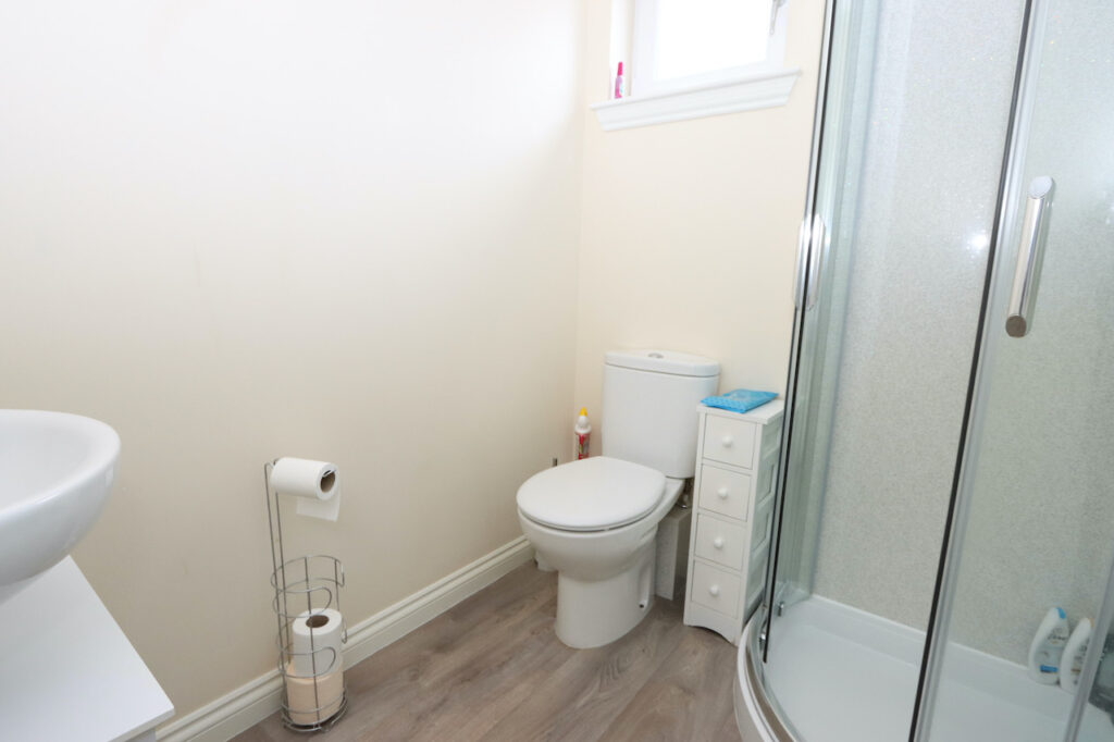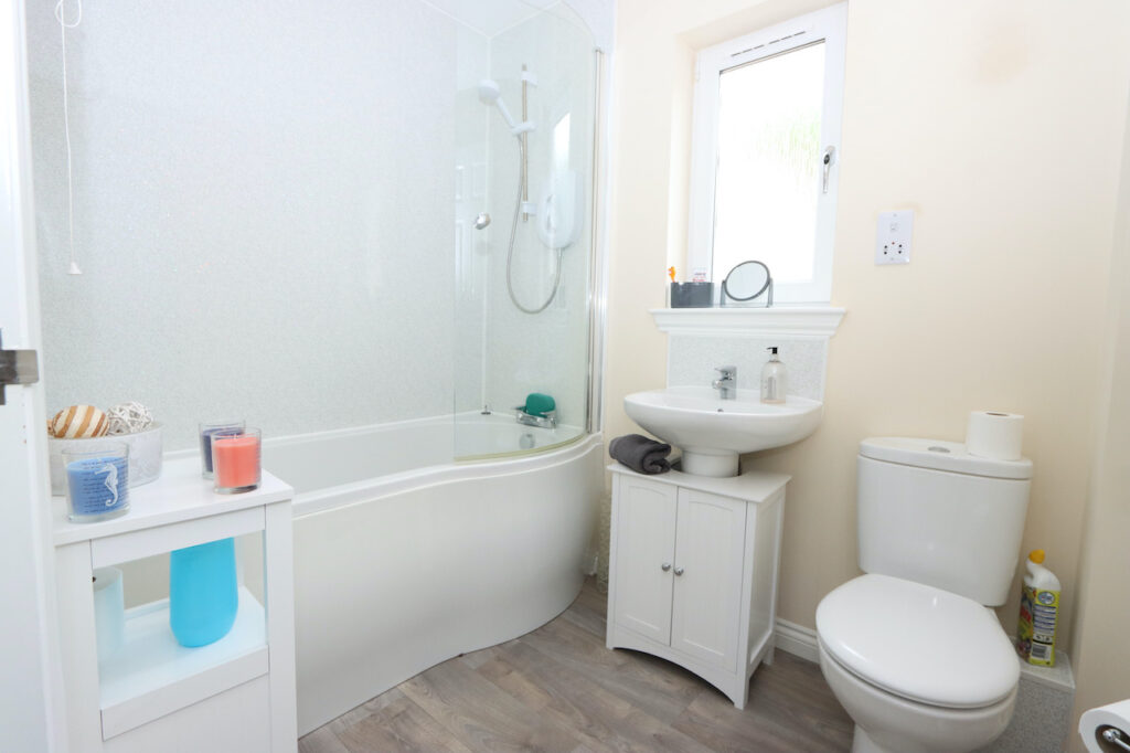 On the upper level are 3 well proportioned bedrooms and family bathroom. The master bedroom benefits from fitted mirror wardrobes and its own ensuite shower facilities, offering a touch of luxury to this delightful home. The second bedroom, which overlooks the rear of the property, also benefits from sliding mirror wardrobes and double sized accommodation. The family bathroom enjoys a three piece white suite incorporating a p-shaped bath with overhead electric shower.