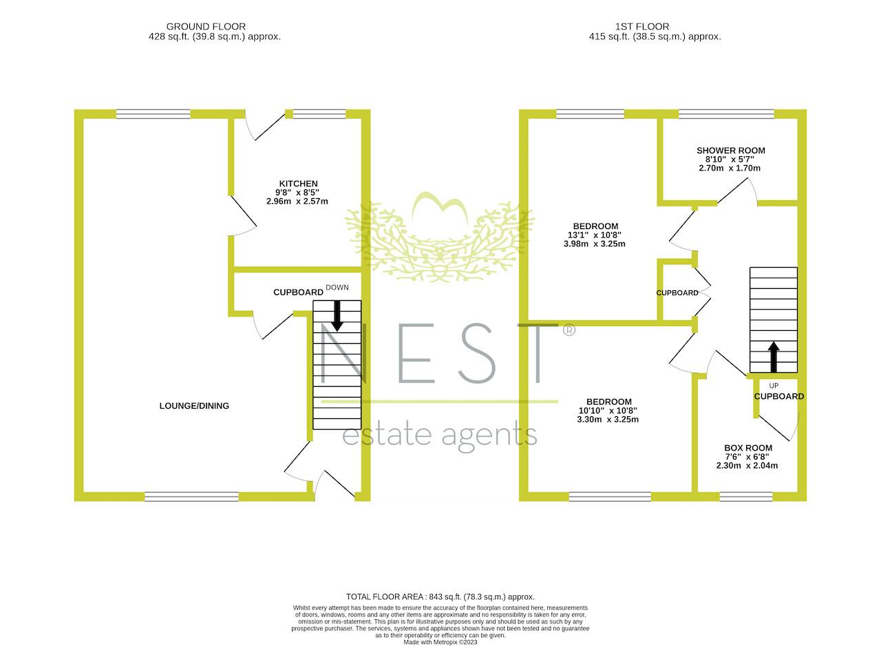 On the upper level, there are 2 double bedrooms, box room and shower room.