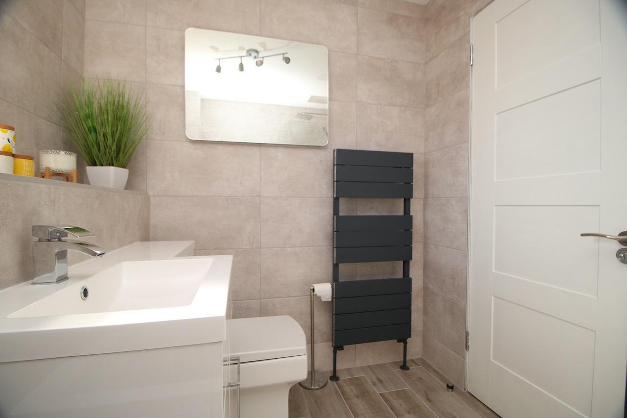 On the upper level the light and airy hallway leads to three well proportioned double bedrooms (one which includes wardrobe storage), family bathroom and office area.  The impressive master bedroom is generous in size and enjoys its own en-suite facilities which includes bath, overhead shower, half height wall tiling and matching floor tiles.  The family bathroom has been recently upgraded and provides full height Porcelanosa wall tiling with matching floor tiles, overhead waterfall shower, white bath and white gloss vanity furniture.